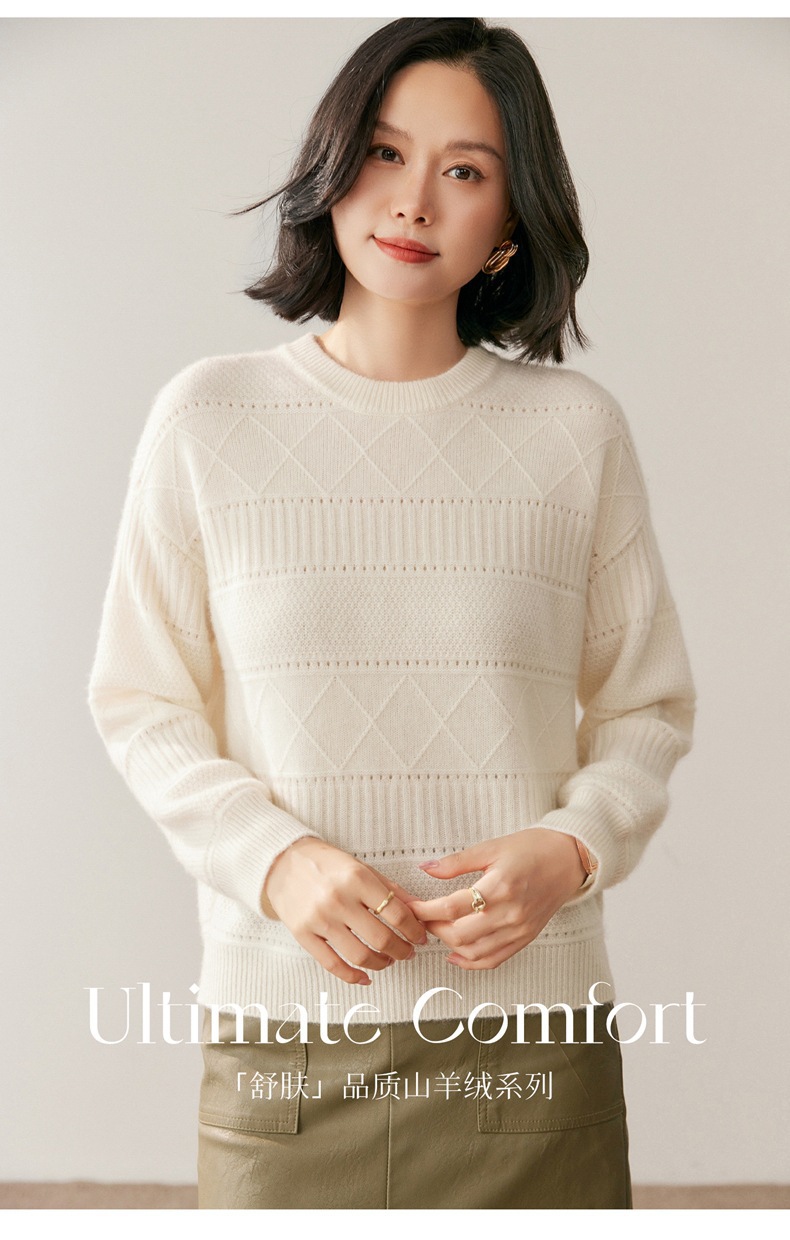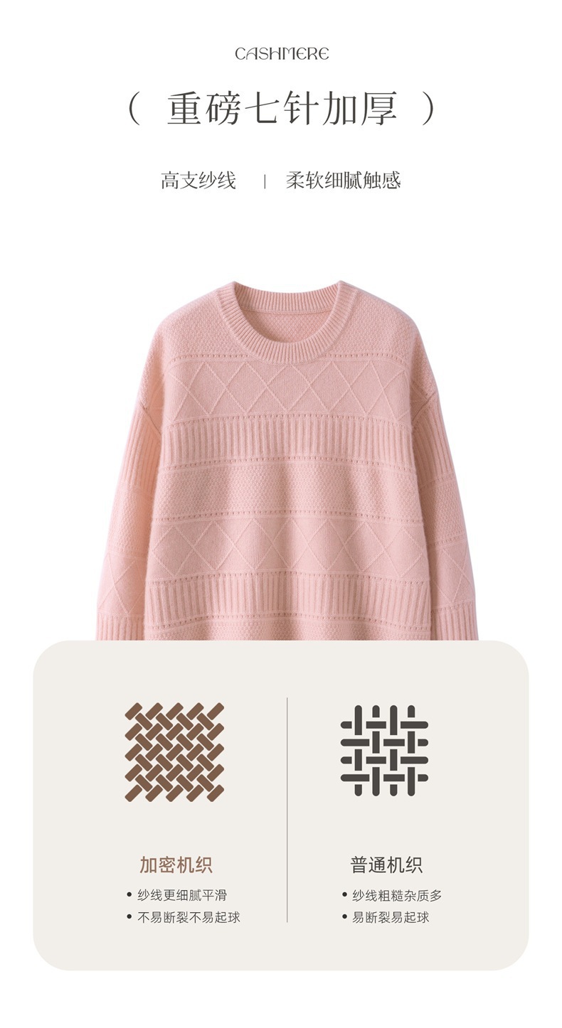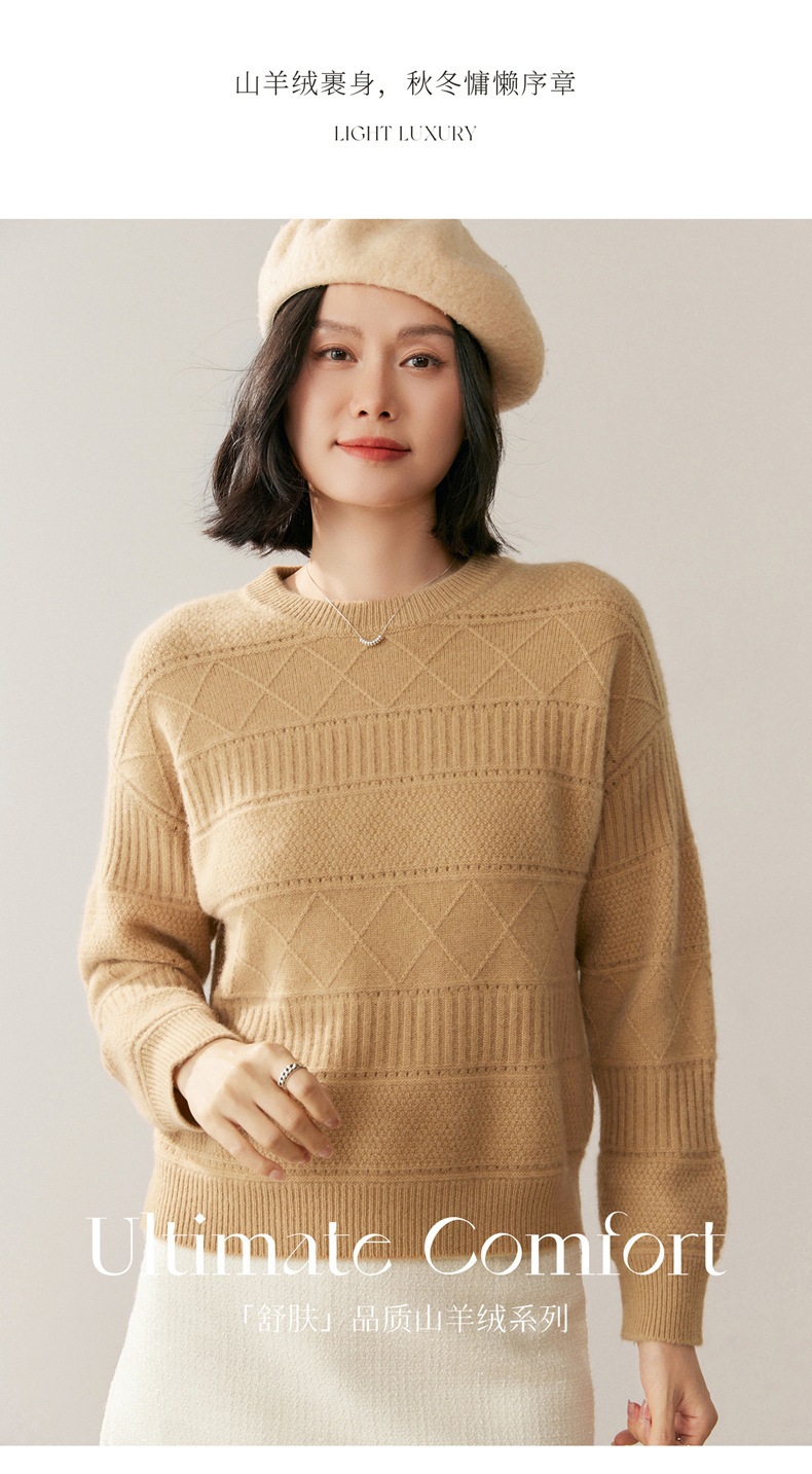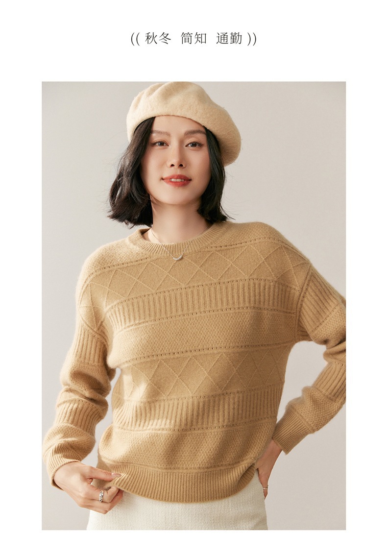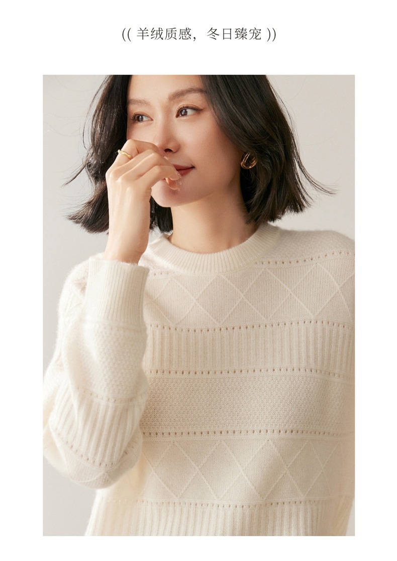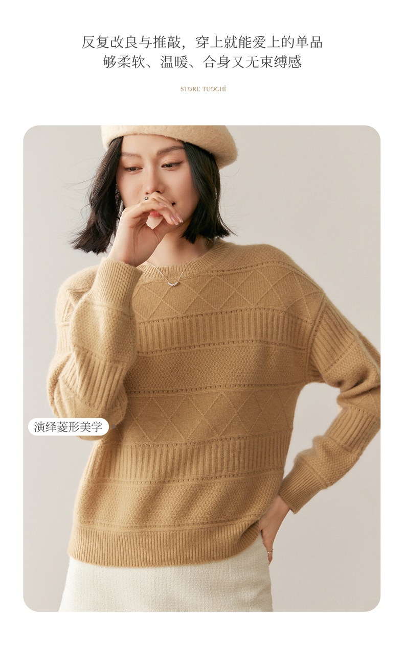 「自」全新升级【铂金会员487/天猫659/差价172】(72343)洛诗琳气质菱形提花羊绒衫2025秋冬新款显瘦圆领针织毛衣
