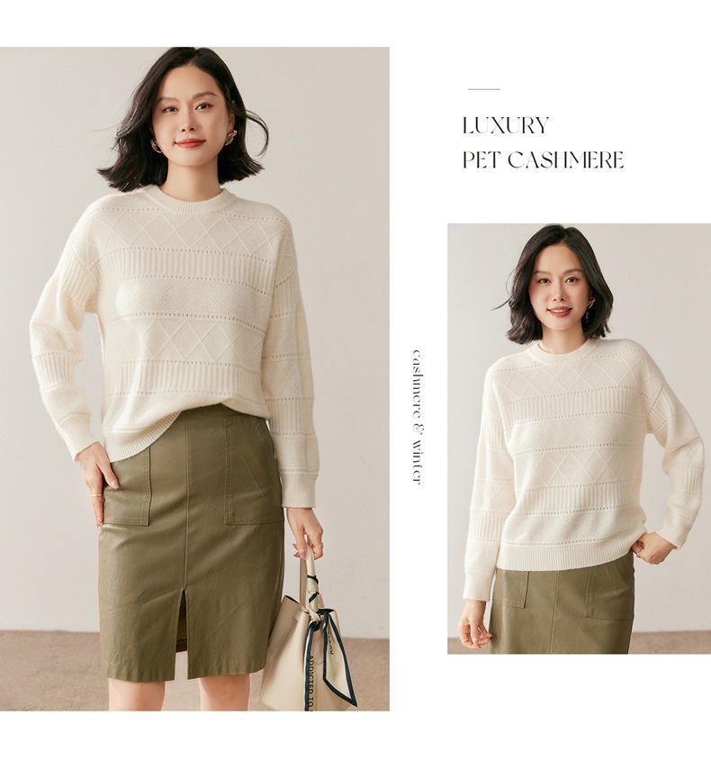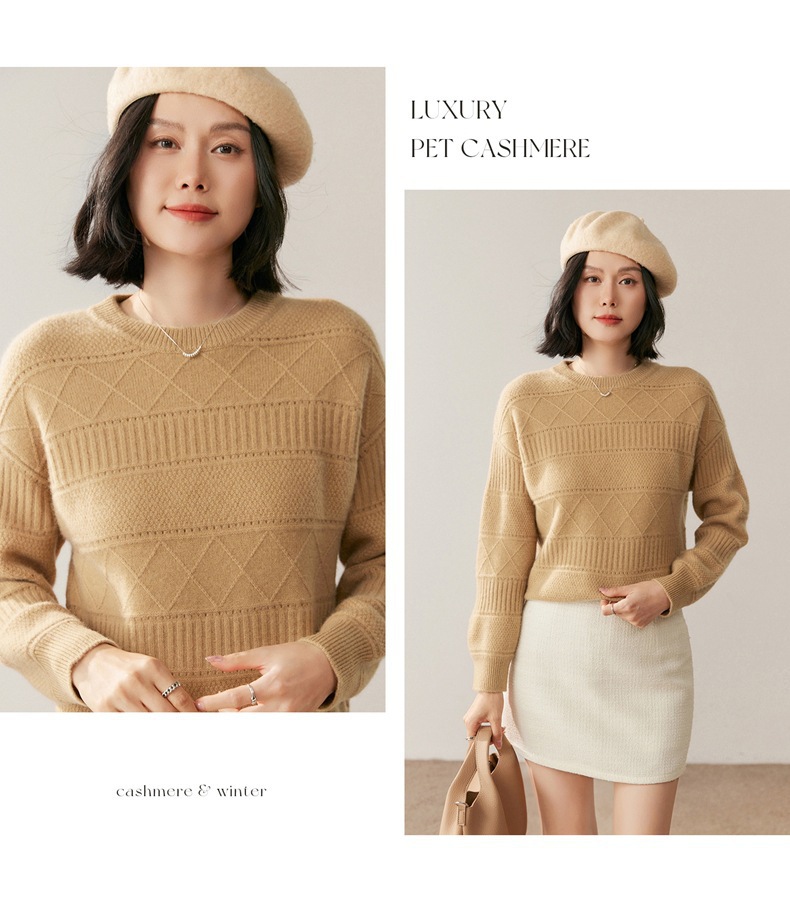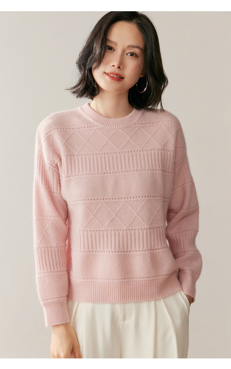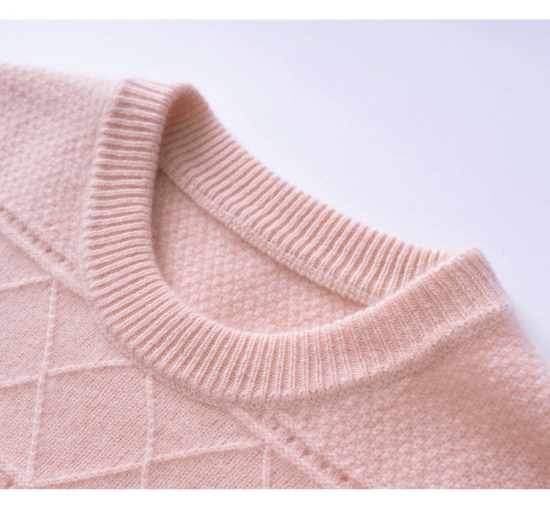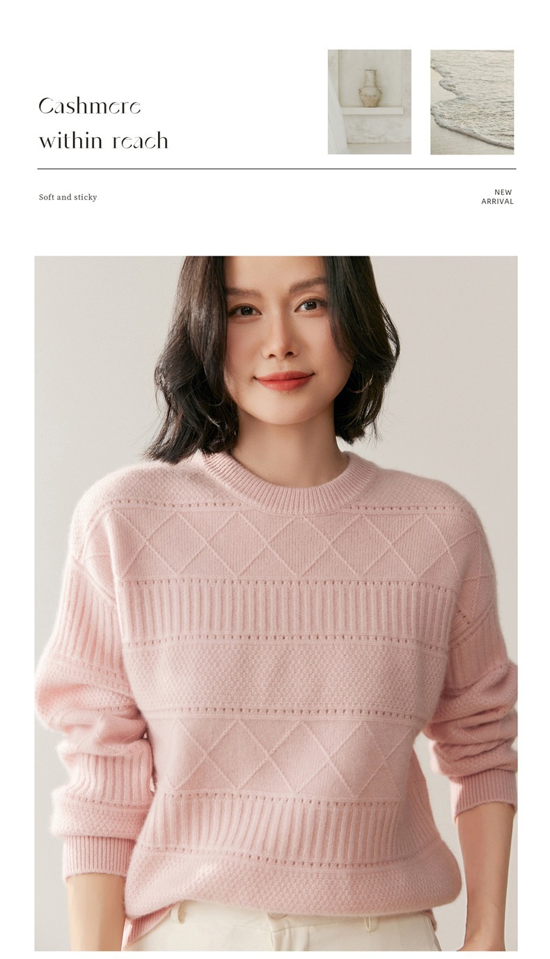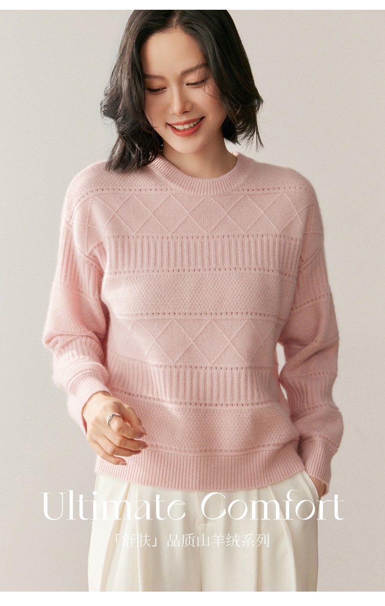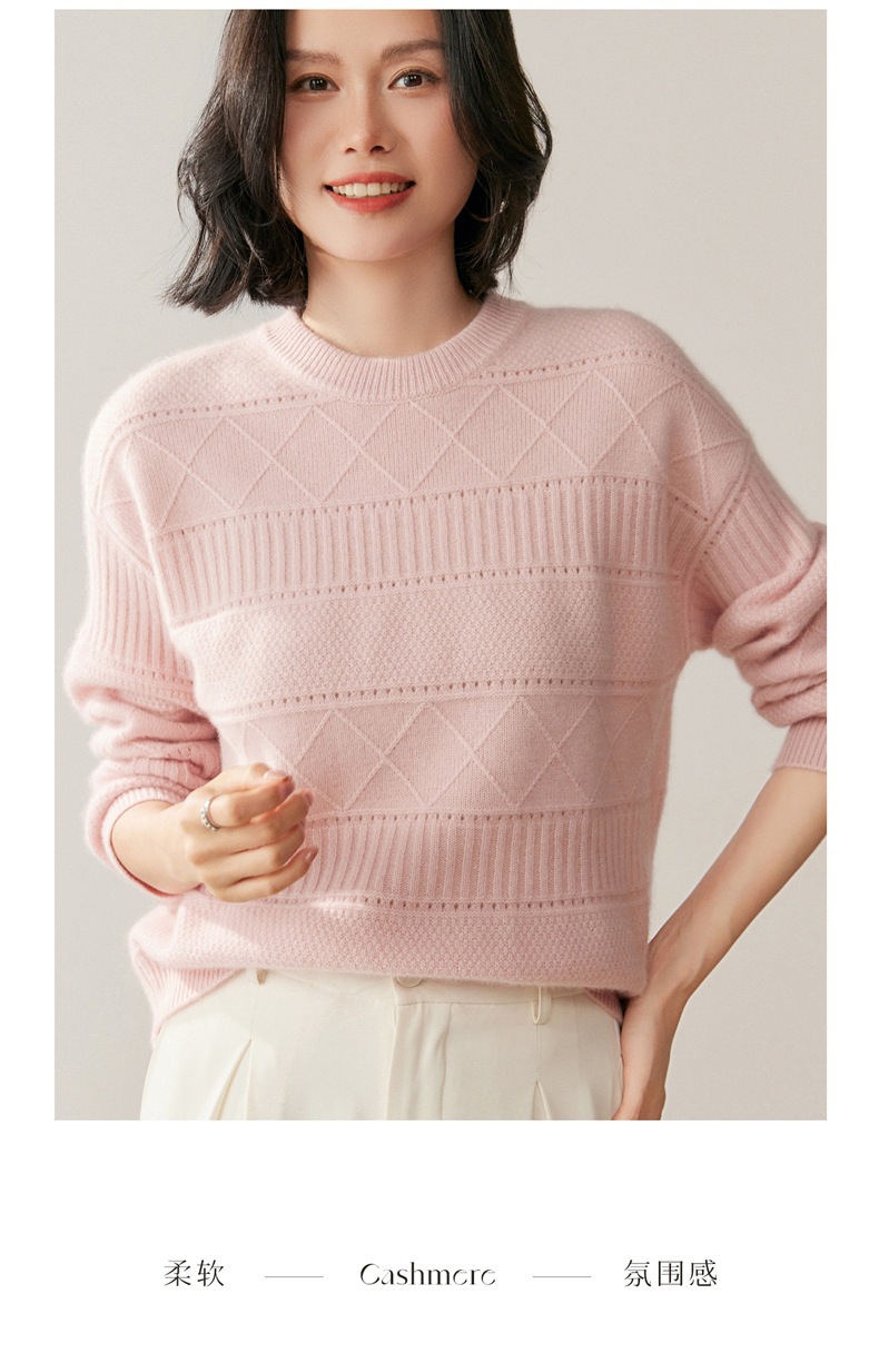 「自」全新升级【铂金会员487/天猫659/差价172】(72343)洛诗琳气质菱形提花羊绒衫2025秋冬新款显瘦圆领针织毛衣