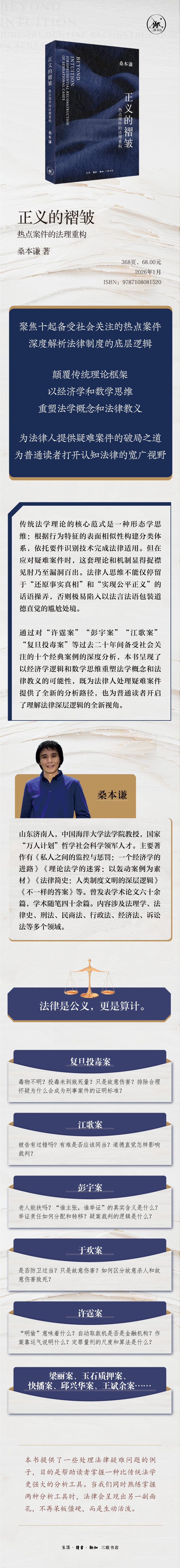 通过对“许霆案”“彭宇案”“江歌案”“复旦投毒案”等过去二十年间备受社会关注的十个经典案例的深度分析,本书呈现了以经济学逻辑和数学思维重塑法学概念和法律教义的可能性,既为法律人处理疑难案件提供了全新的分析路径,也为普通读者开启了理解法律深层逻辑的全新视角。