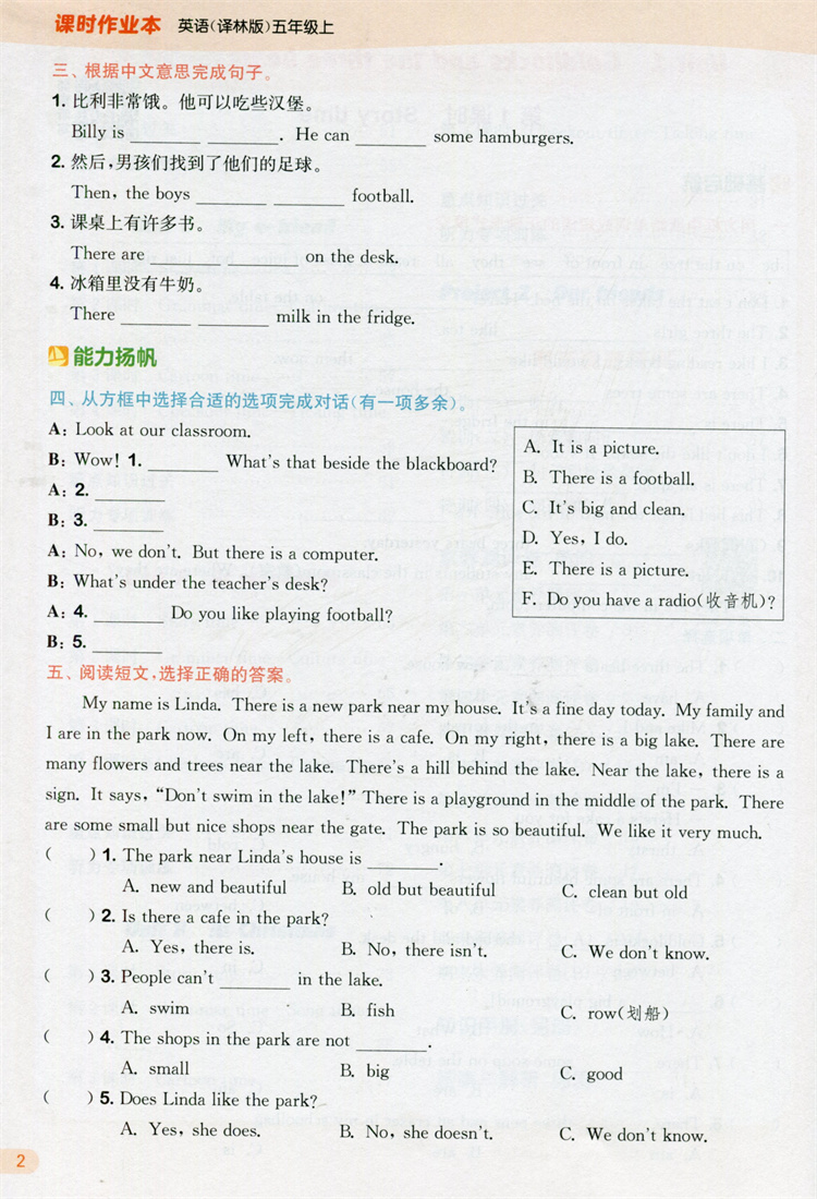 包邮 2025年秋 课时作业本英语5上 译林版 小学五年级上册 小学教辅 浙江教育出版社
