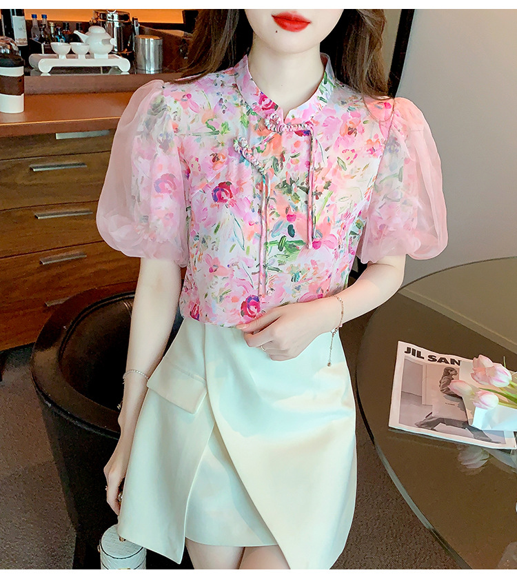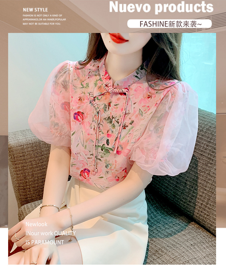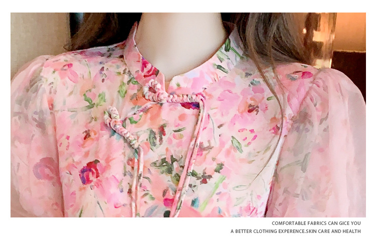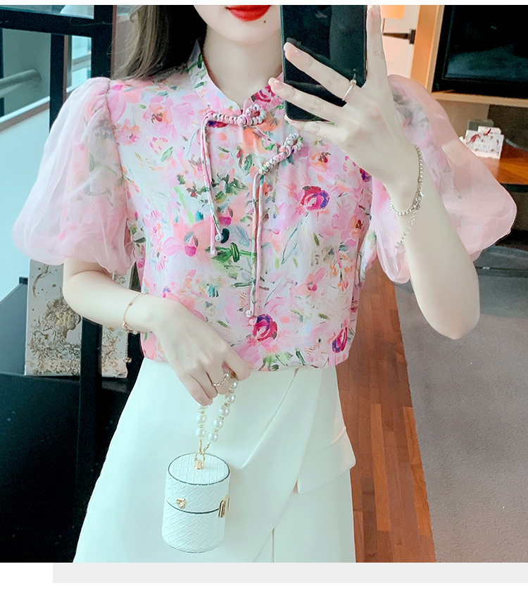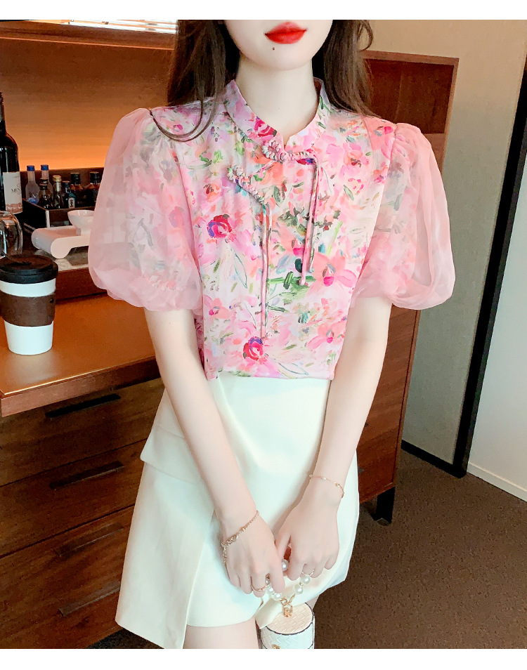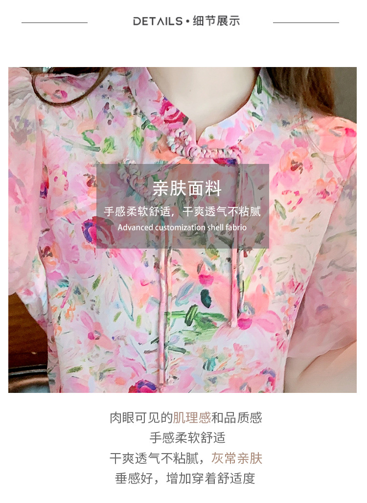 新款国风气质盘扣雪纺印花复古改良旗袍上衣K-157T6700