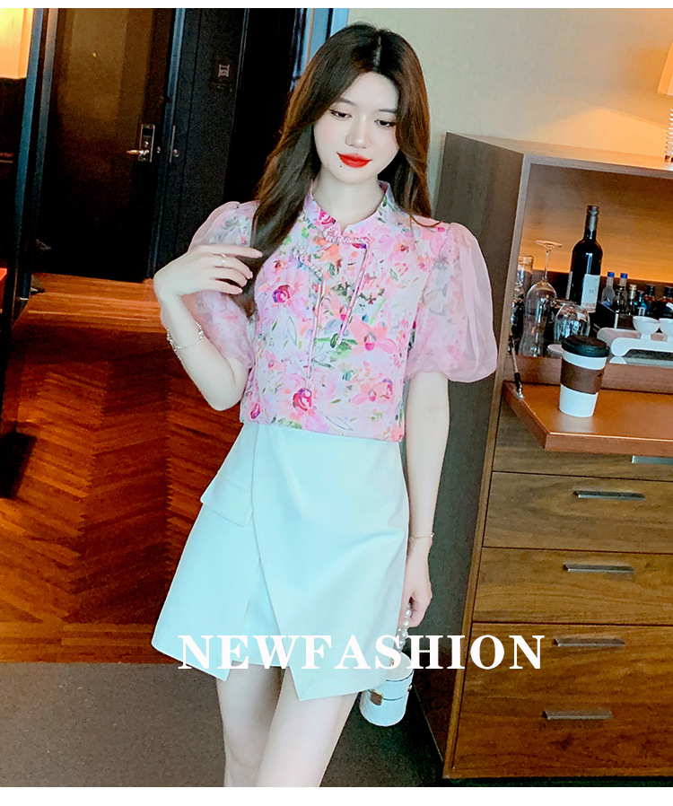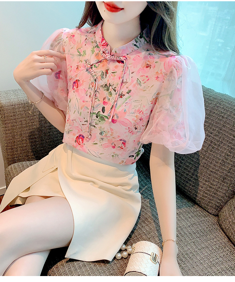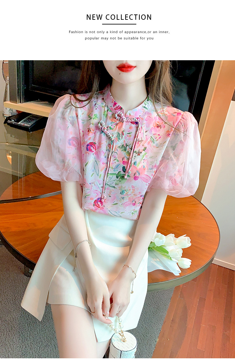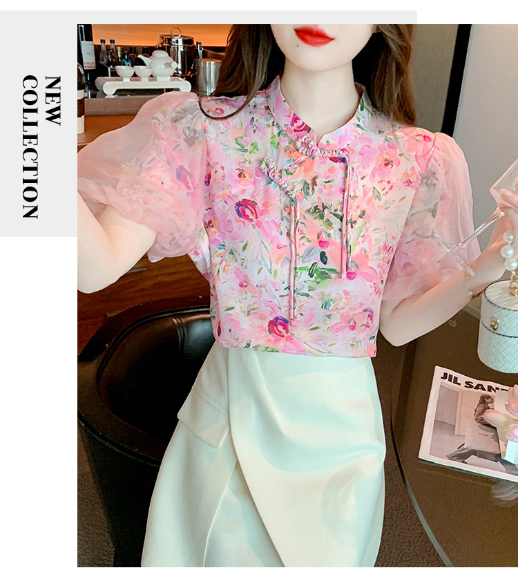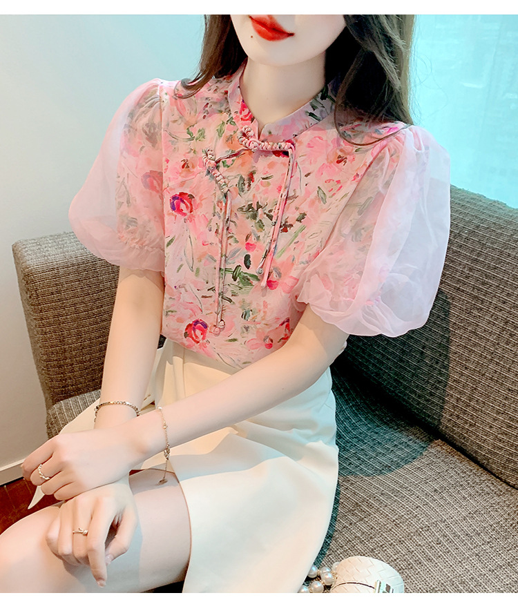 新款国风气质盘扣雪纺印花复古改良旗袍上衣K-157T6700