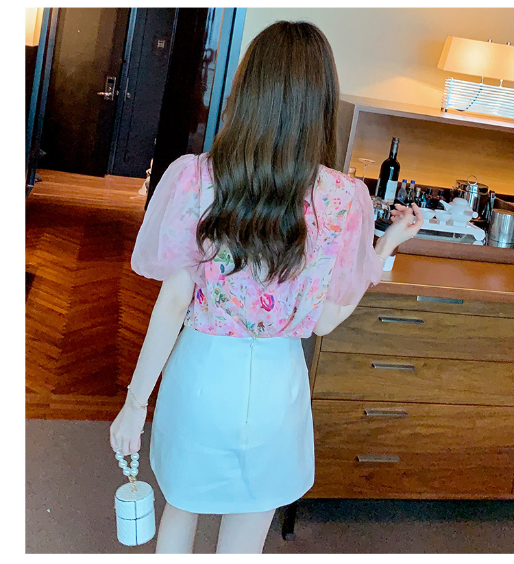夏季棉洋气雪纺边修身短款时尚小衫LM06562