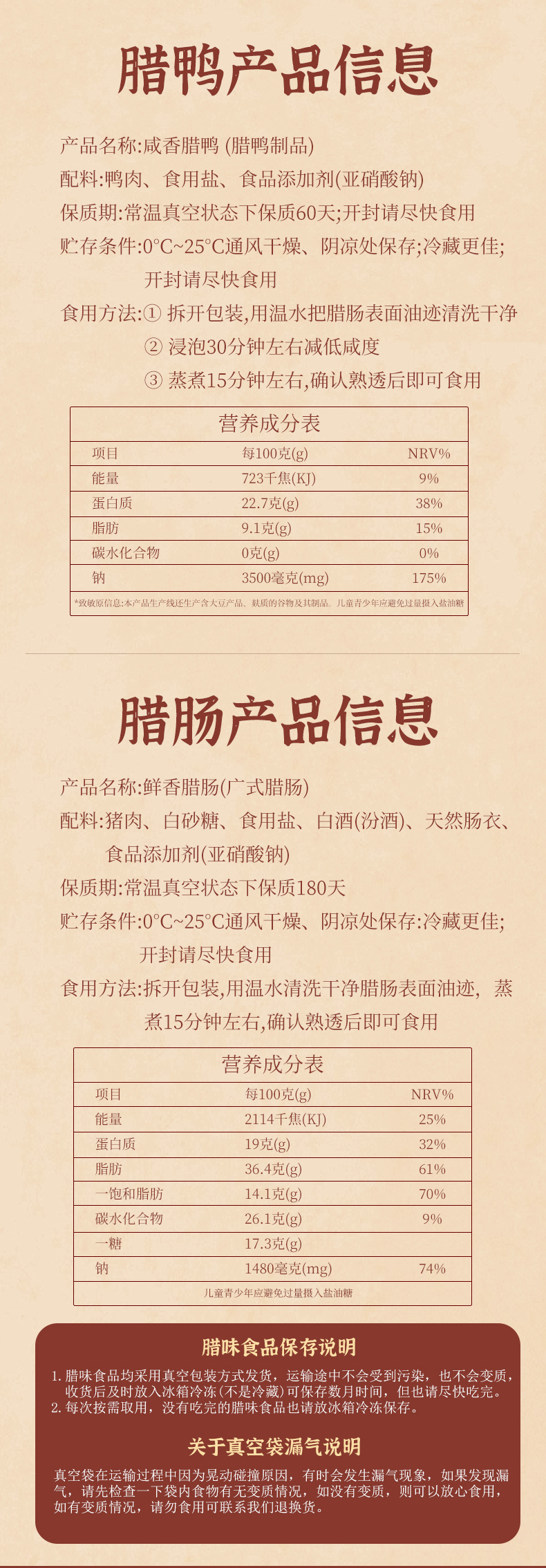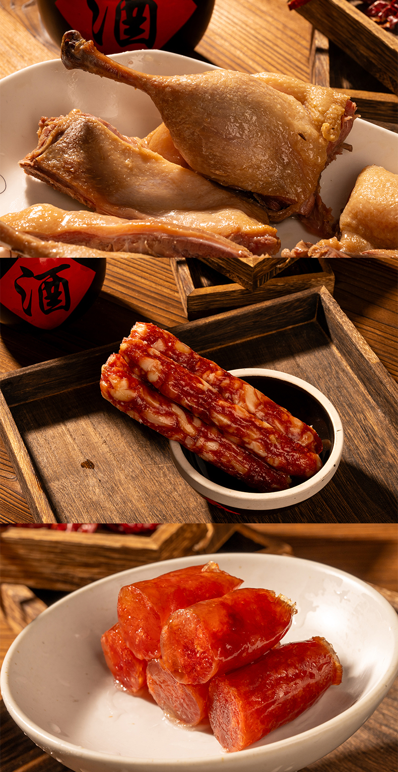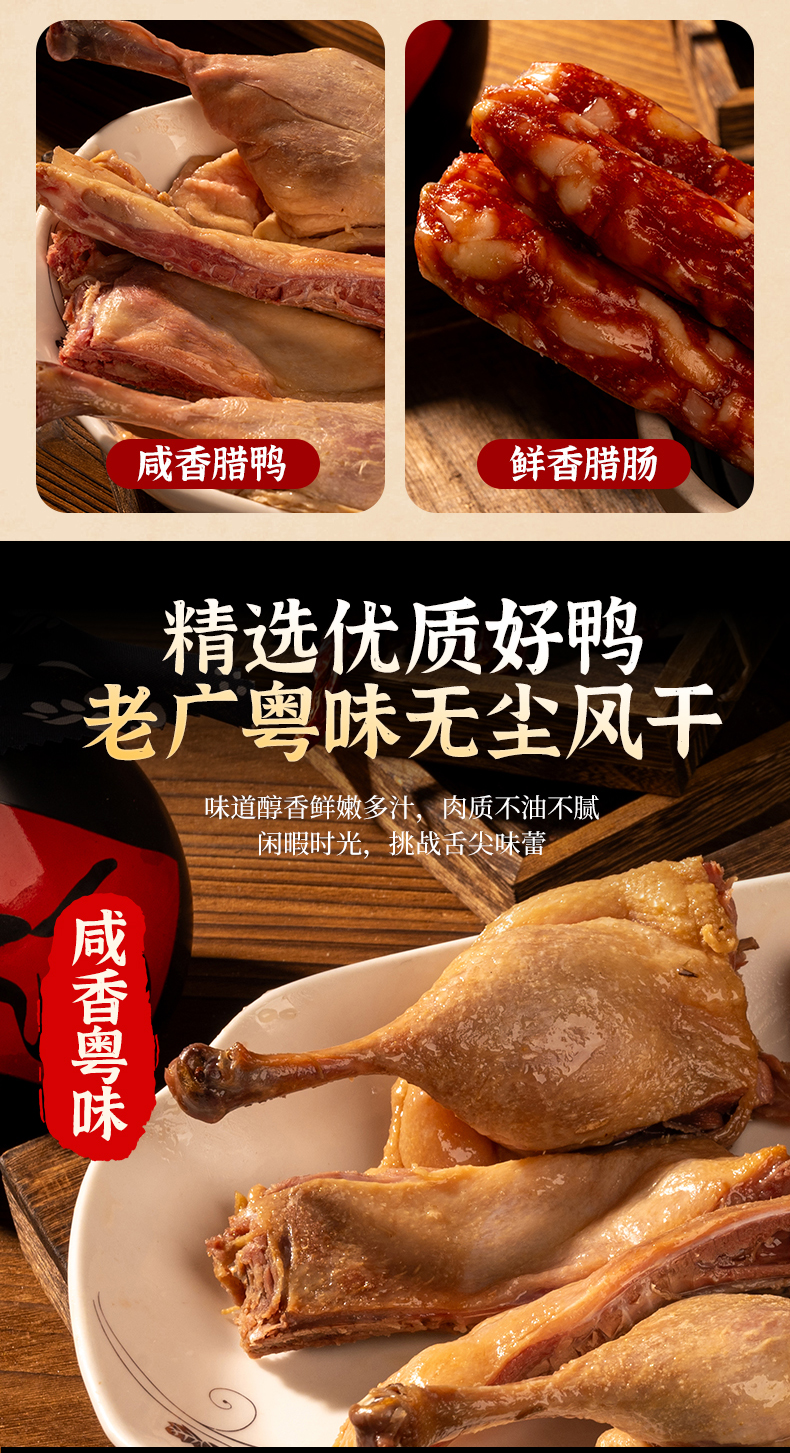 【广味双绝】今余年·腊味礼盒 咸香腊鸭1只+鲜香腊肠250g*2 传统生晒 手工灌制 油润咸香 美味至极