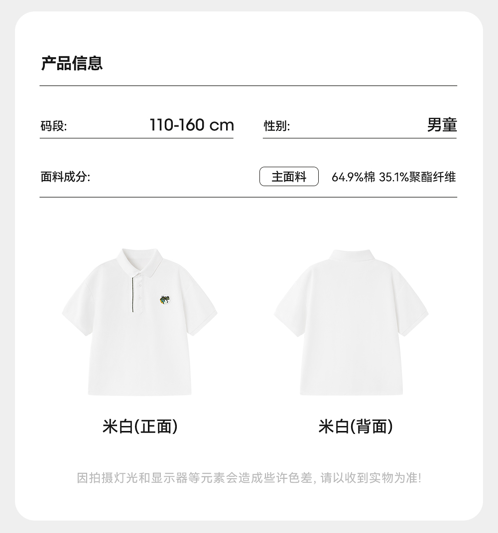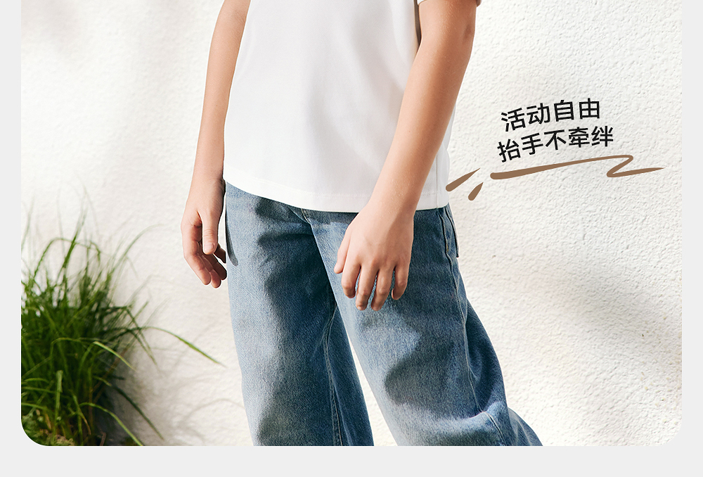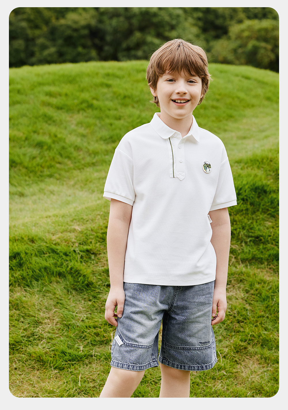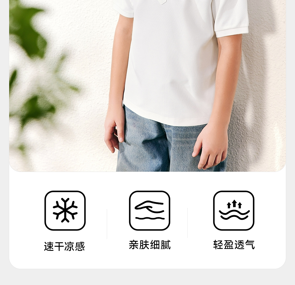 英氏儿童衣服夏季短袖凉感T恤男童纯色POLO衫中大童T恤2025新款