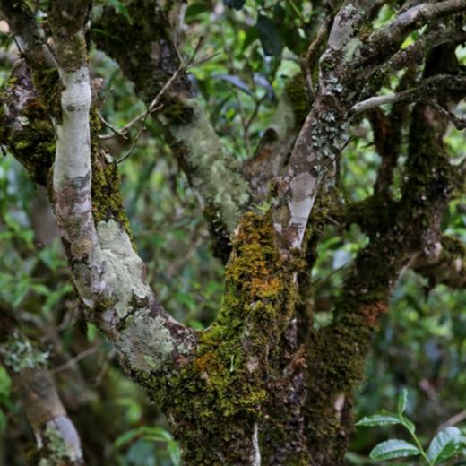 茶树经历了漫长的岁月,树干上长满了苔藓、地衣、蕨类等寄生物。