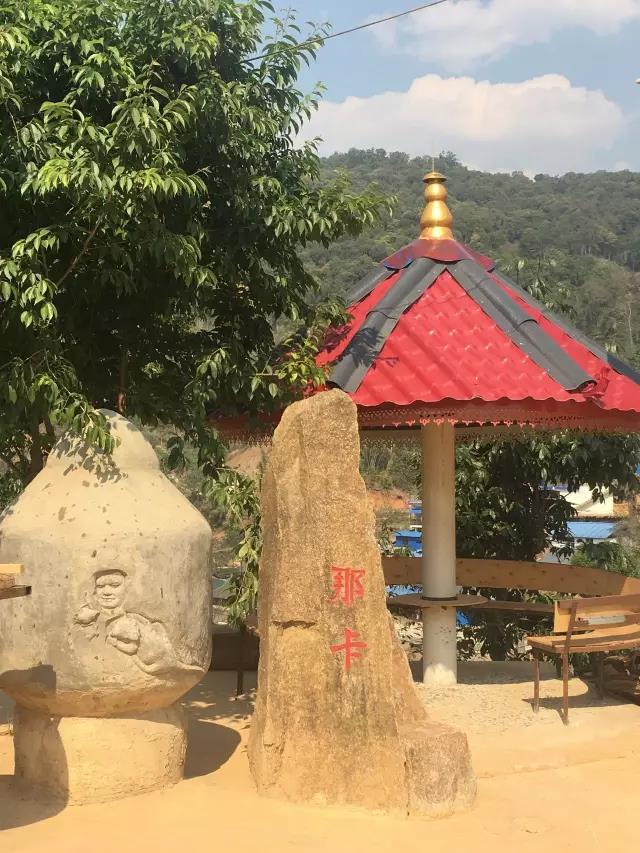 寨子口有一块大石头,上书"那卡"二字,石头旁边有一座小亭子,供来往行人歇脚。