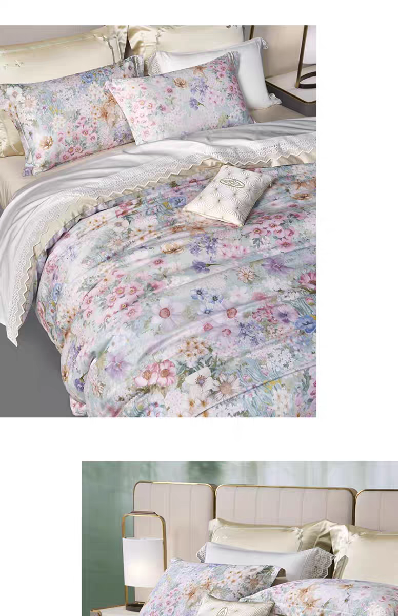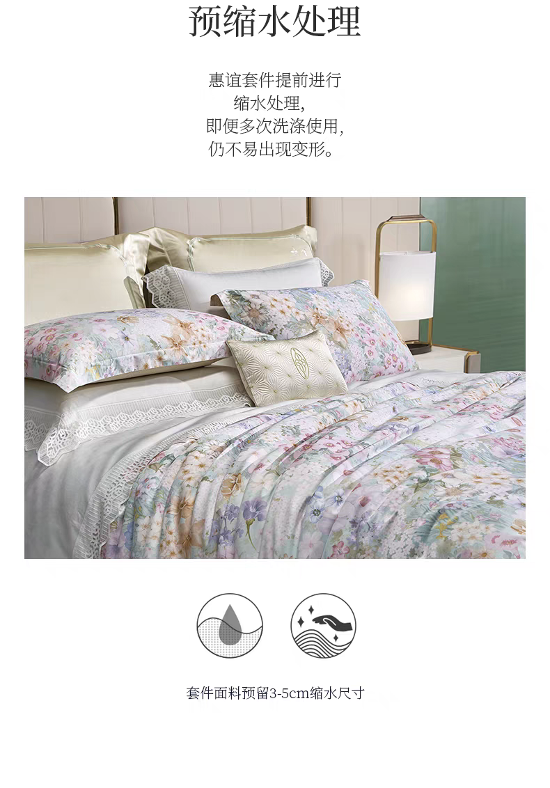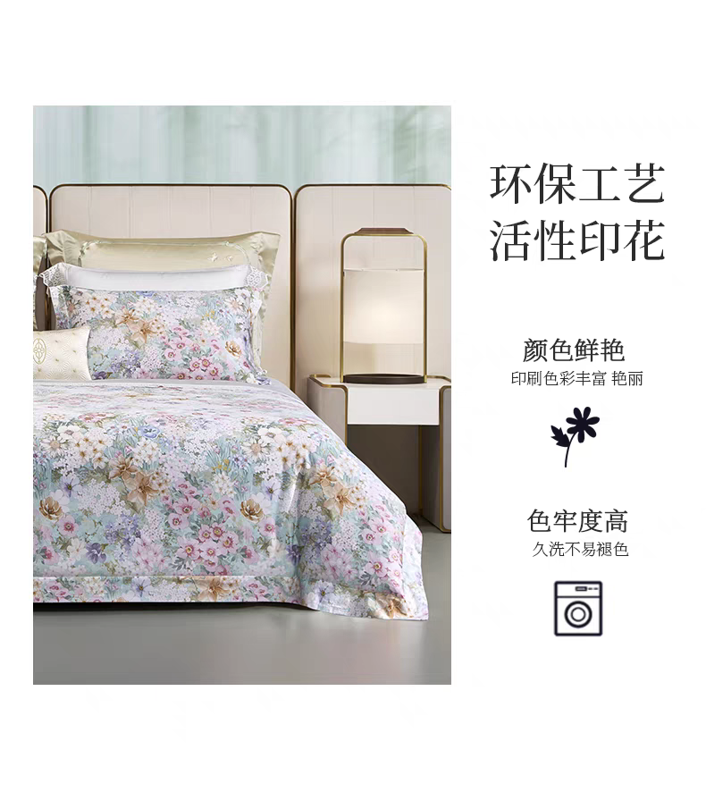 whinny/惠谊 现代新中式全棉长绒棉贡缎印花四件套 春意盎然
