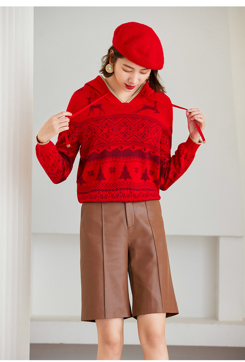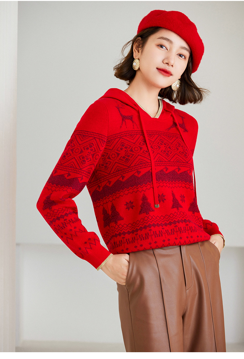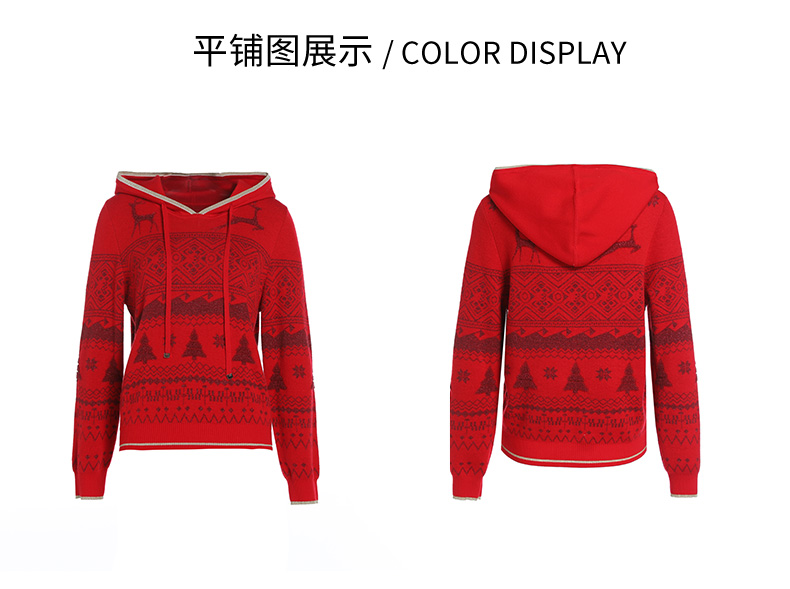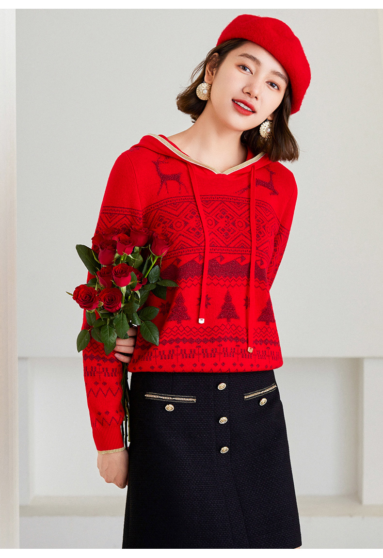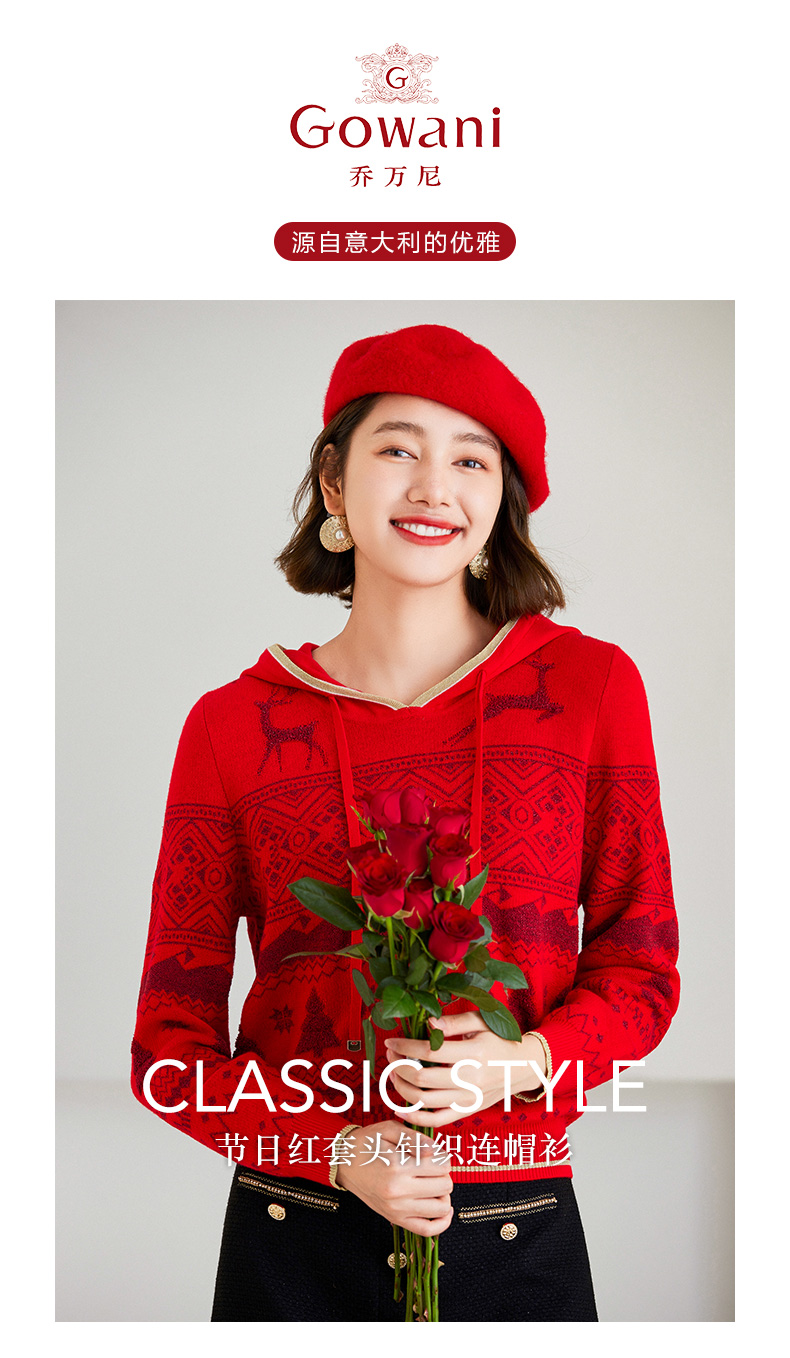 乔万尼针织衫新品绵羊毛连帽套头衫喜庆ET4M961