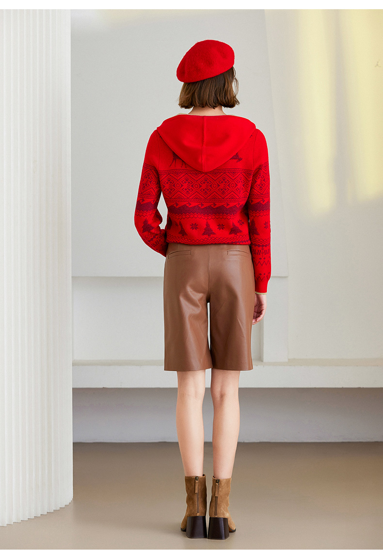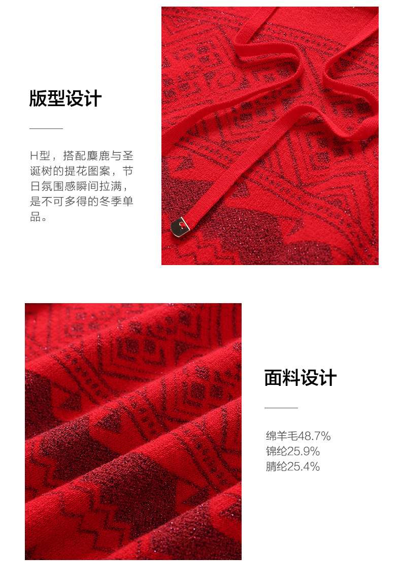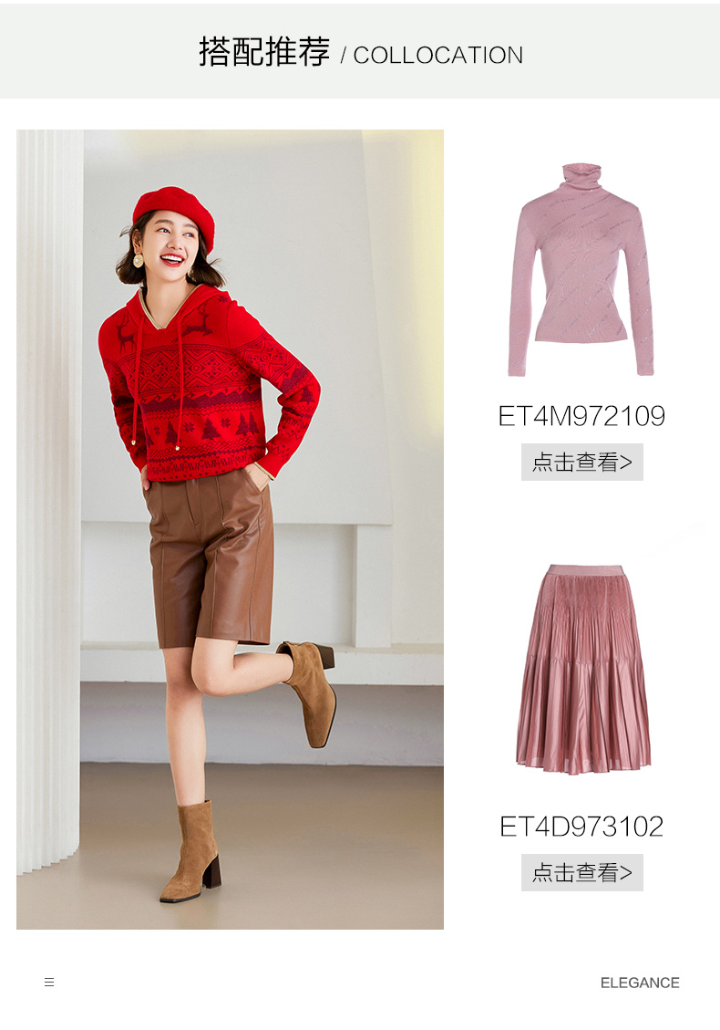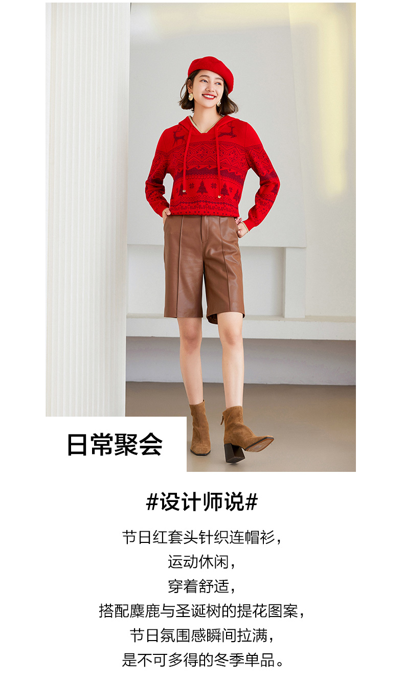 乔万尼针织衫新品绵羊毛连帽套头衫喜庆ET4M961