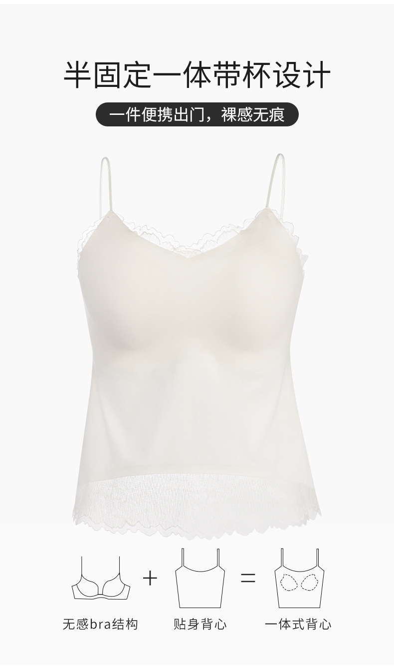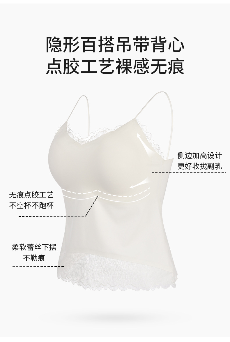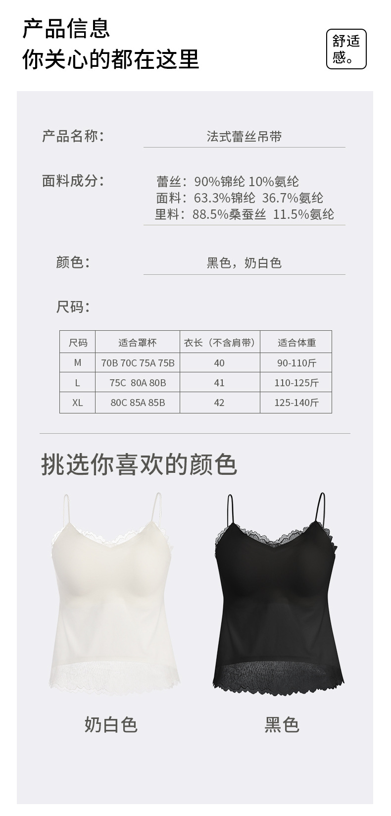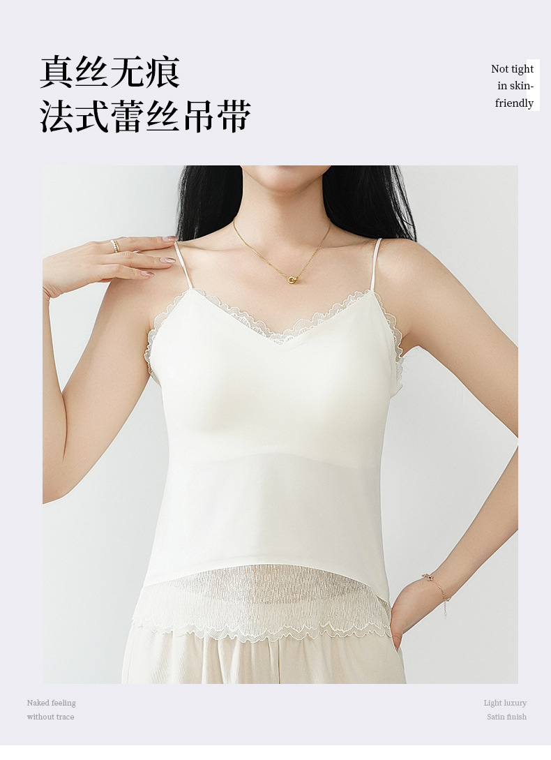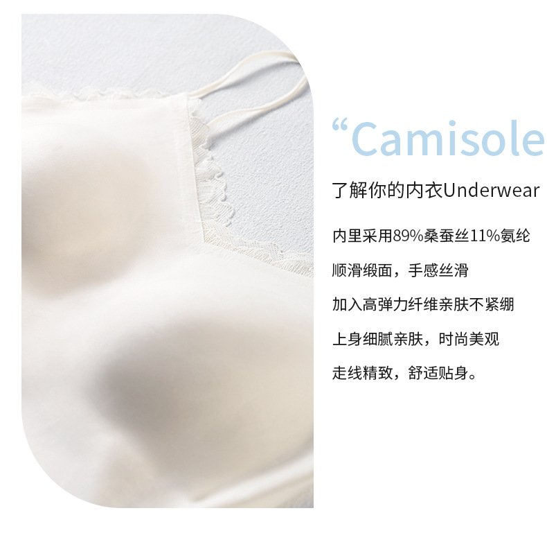 丁摩真丝无痕法式蕾丝花边吊带 桑蚕丝细肩带带罩杯一体式背心AL2S263