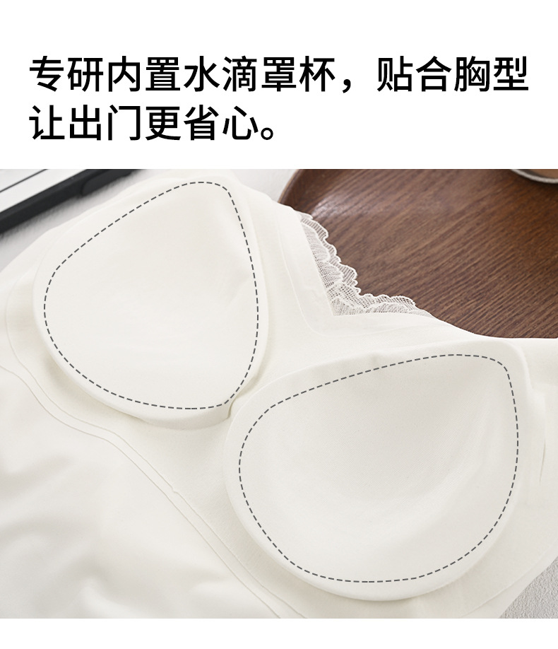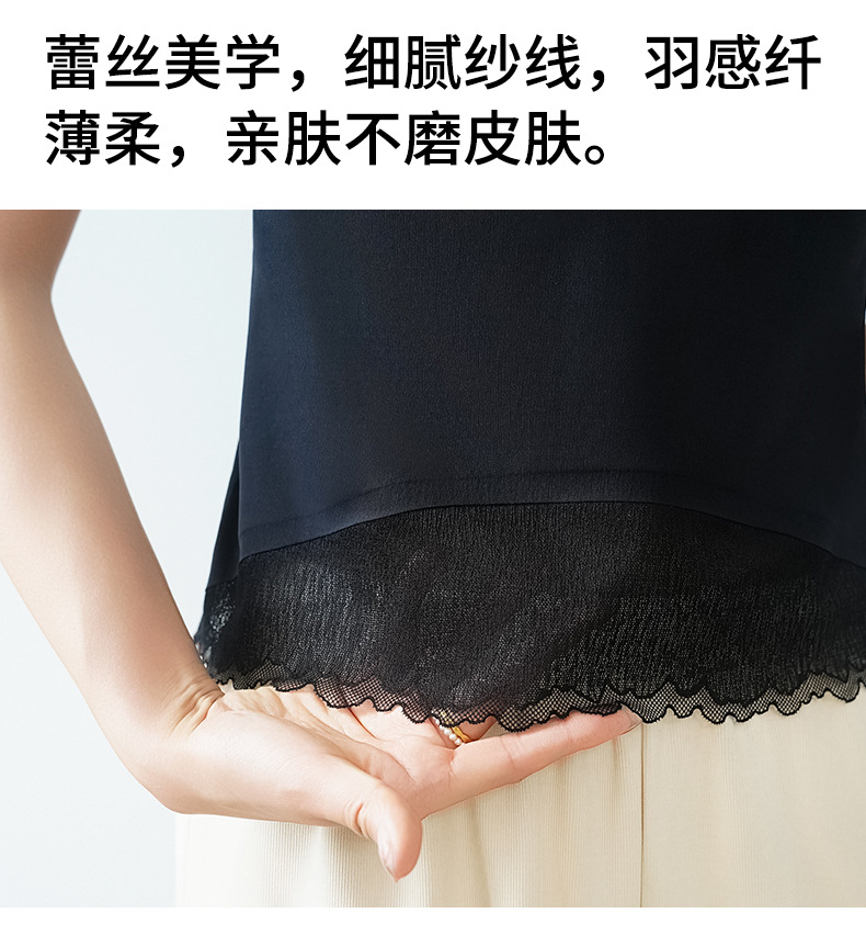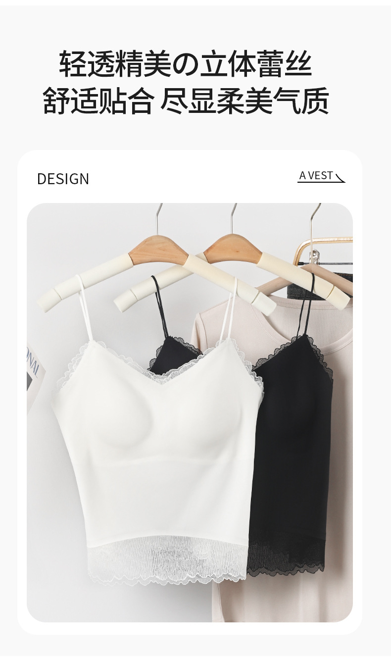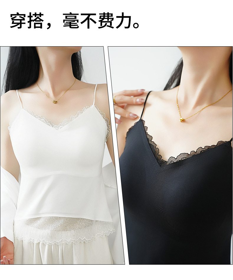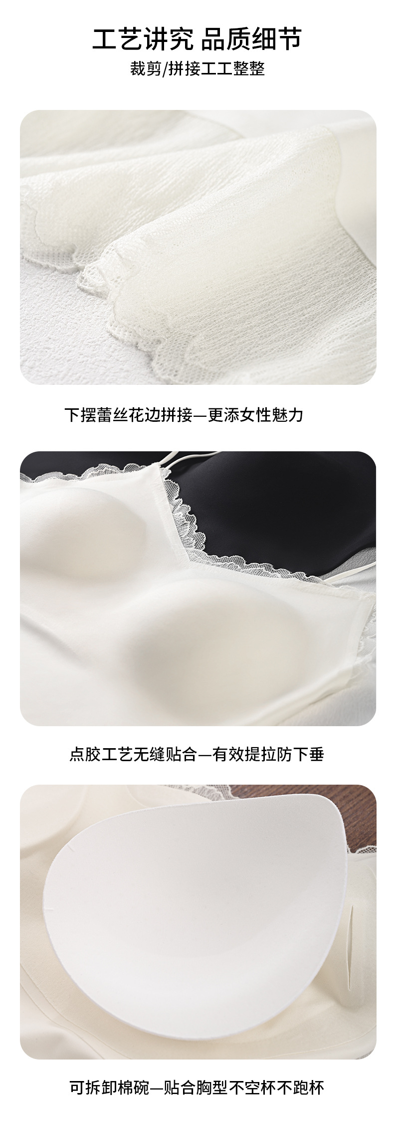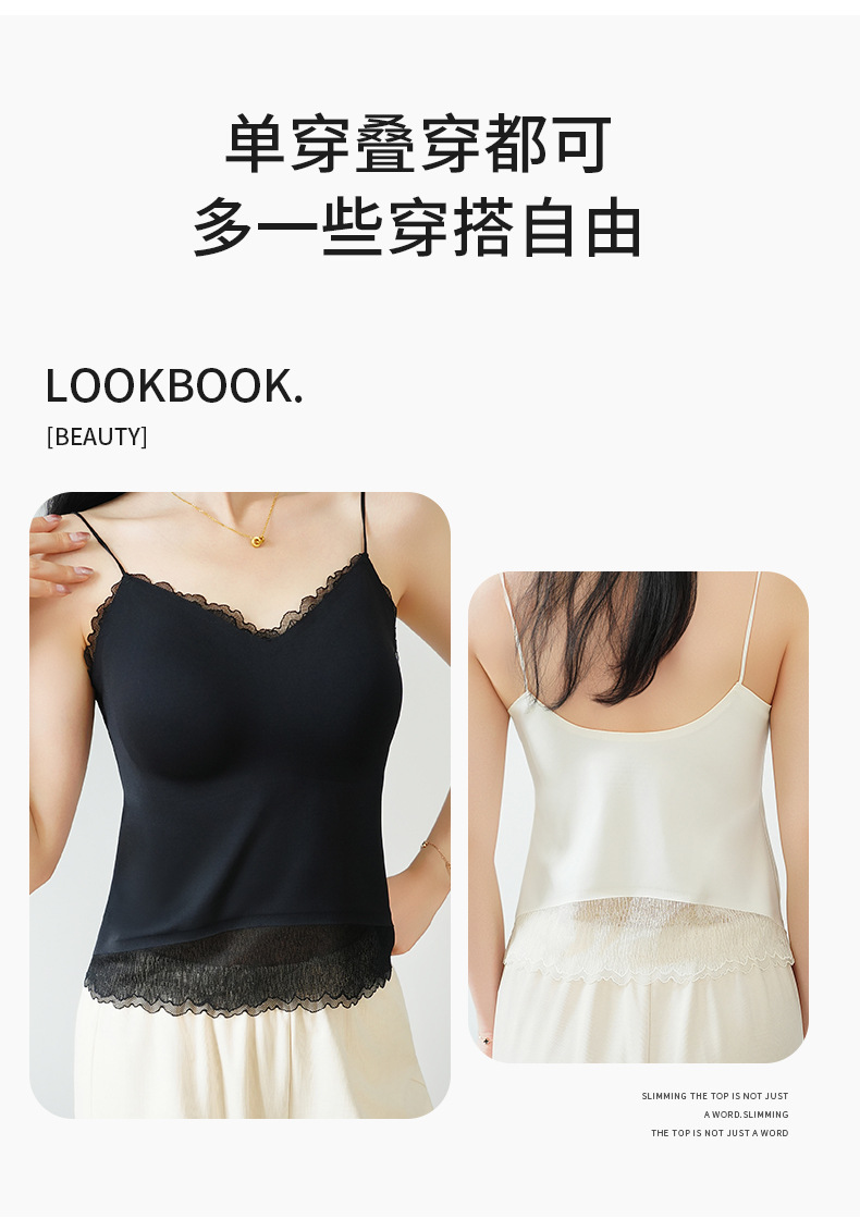 丁摩真丝无痕法式蕾丝花边吊带 桑蚕丝细肩带带罩杯一体式背心AL2S263