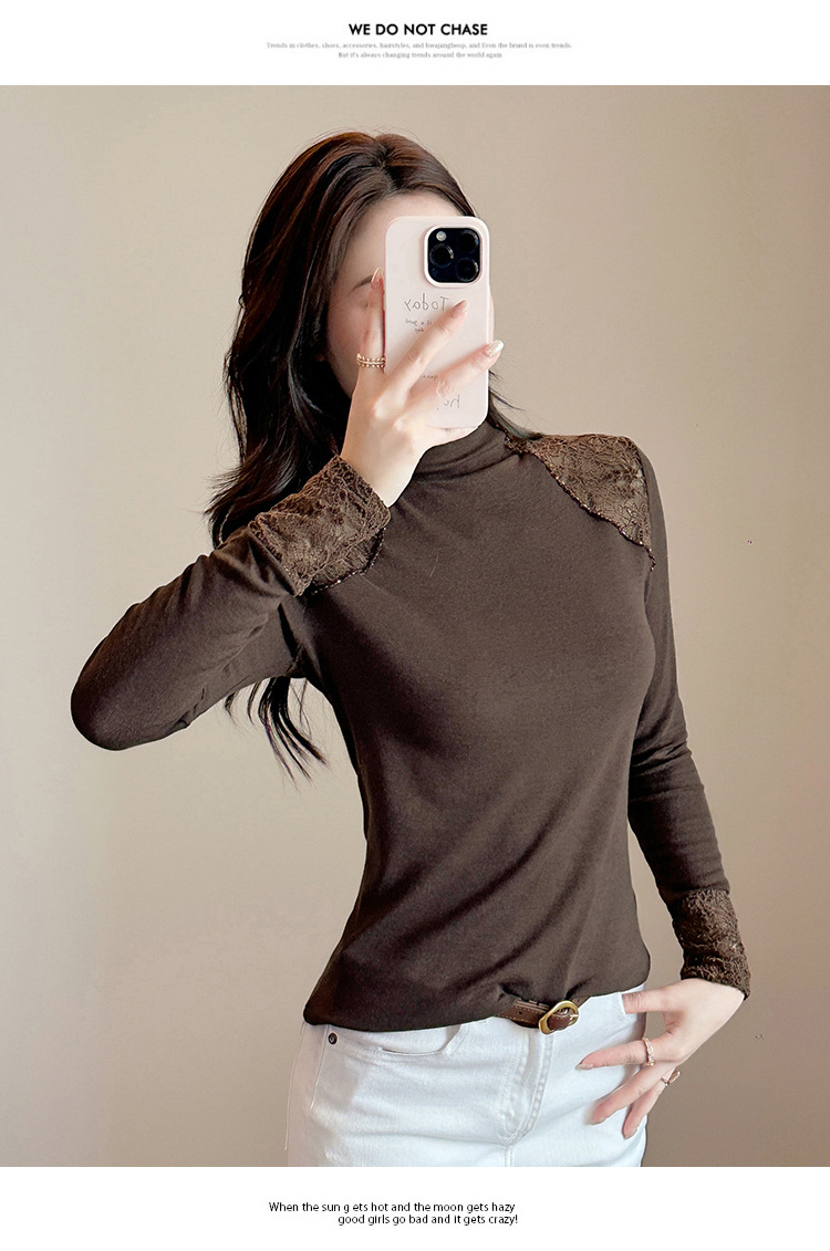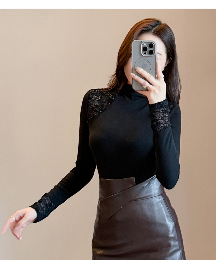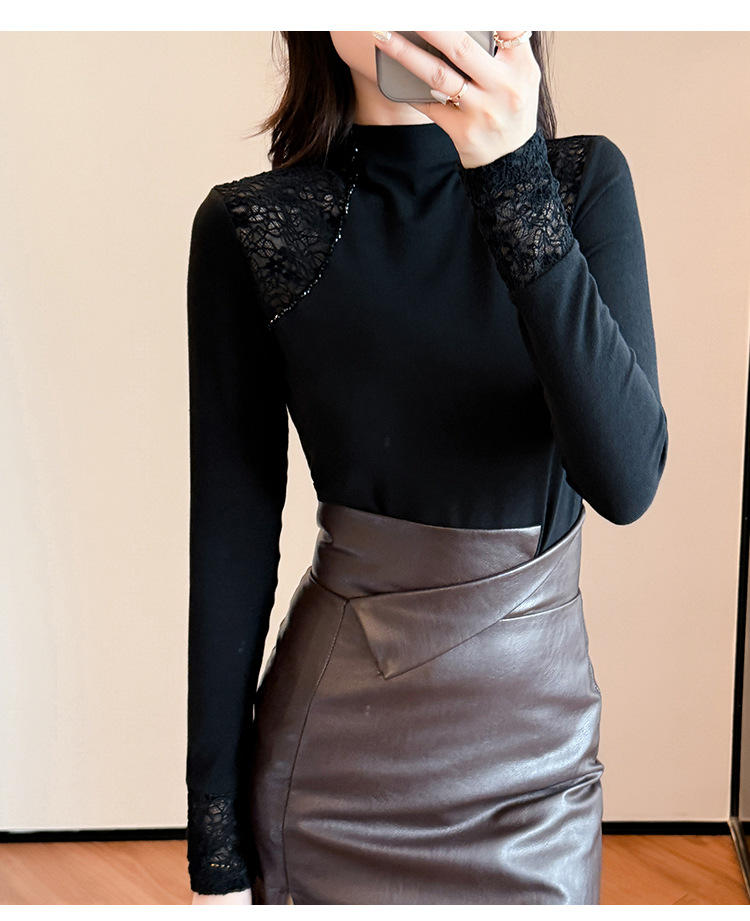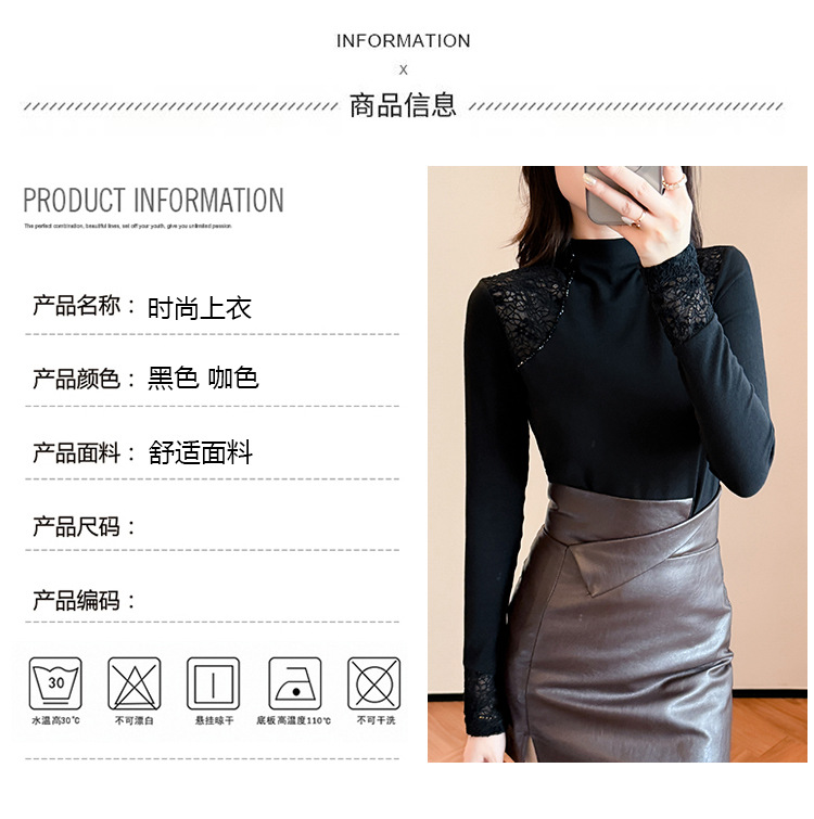 气质网纱打底衫,百搭长袖t恤加绒上衣TYL569