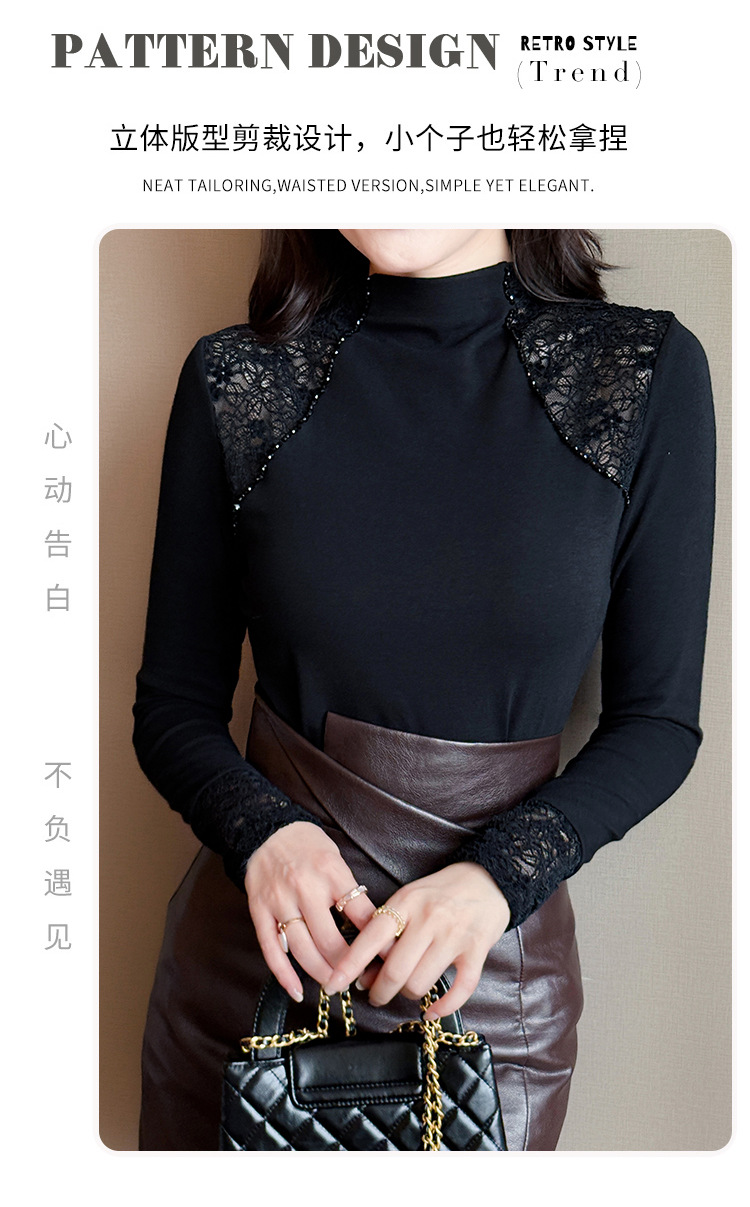 磨毛加厚半高领钉珠设计感上衣,纯色T恤显瘦长袖KQL-311H9183