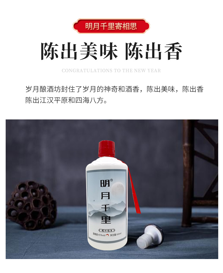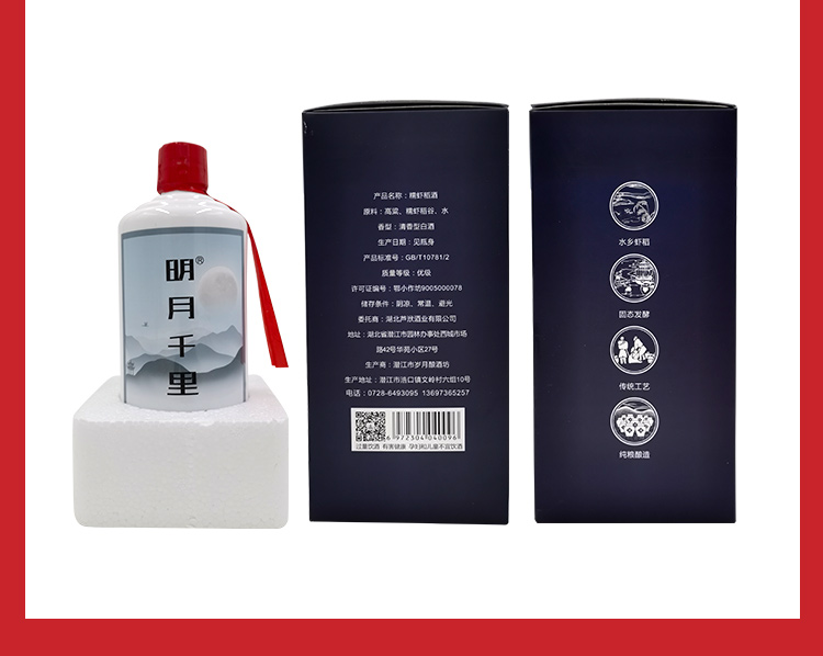 明月千里糯虾稻酒 潜江特产清香型白酒 45度2瓶*500ml礼盒装