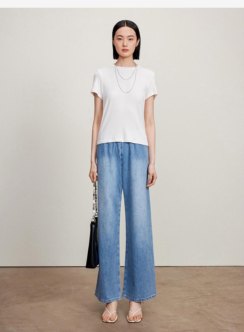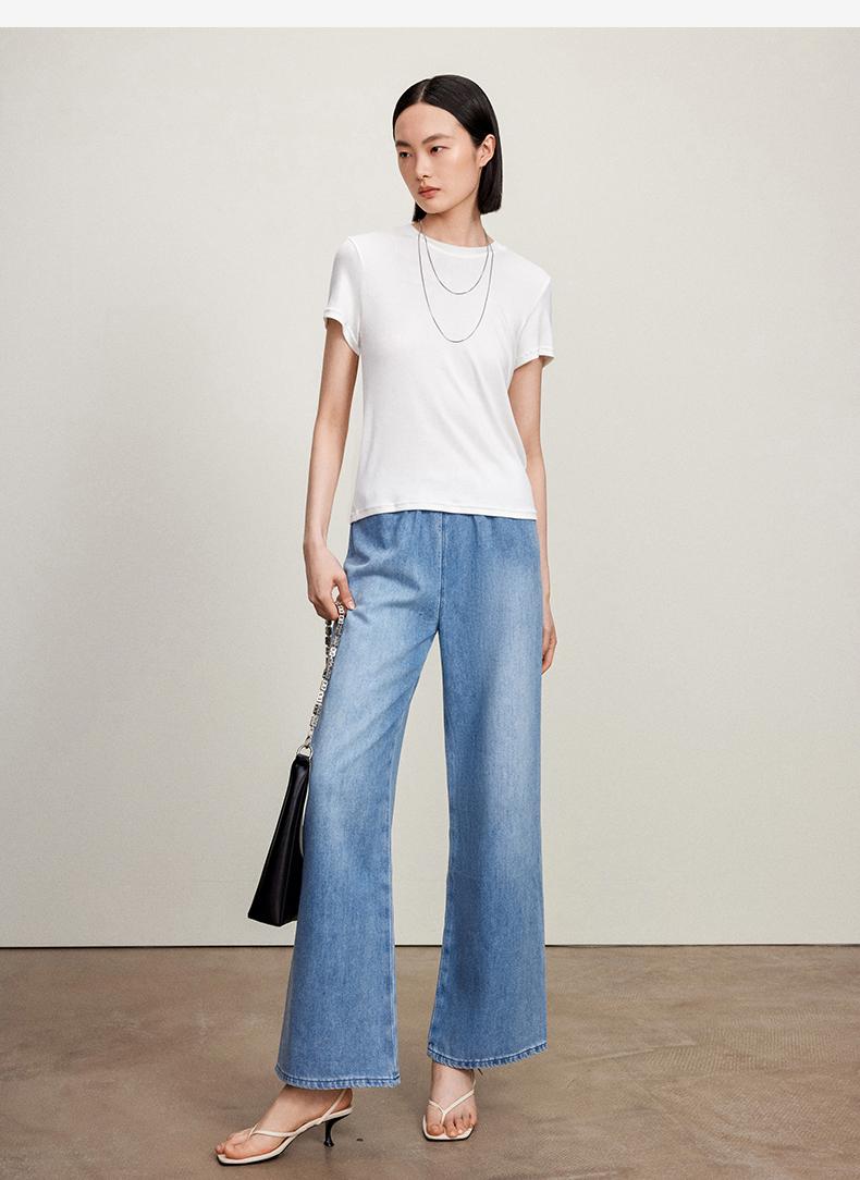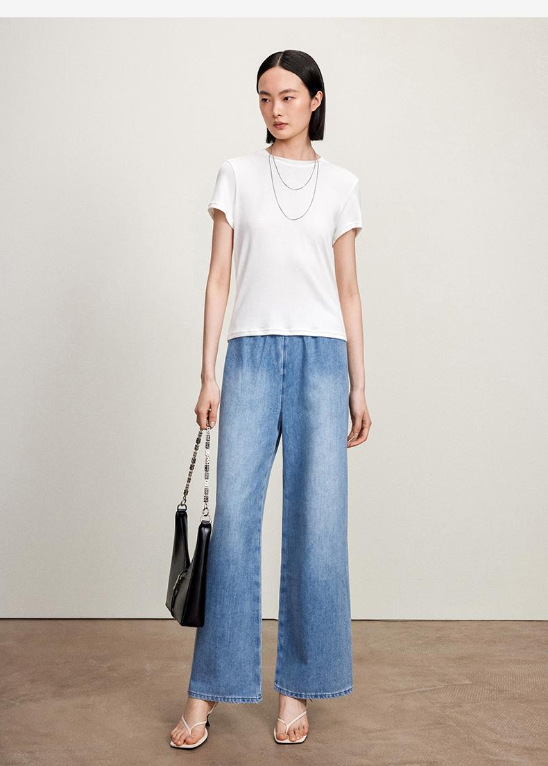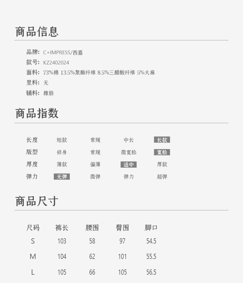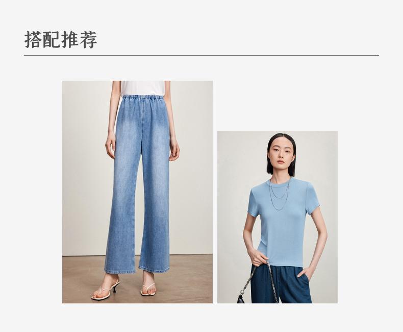 西嘉C+IMPRESS/西嘉三菱三醋酸轻薄松紧腰牛仔裤女汉麻一片式藏肉显瘦KZ2402024
