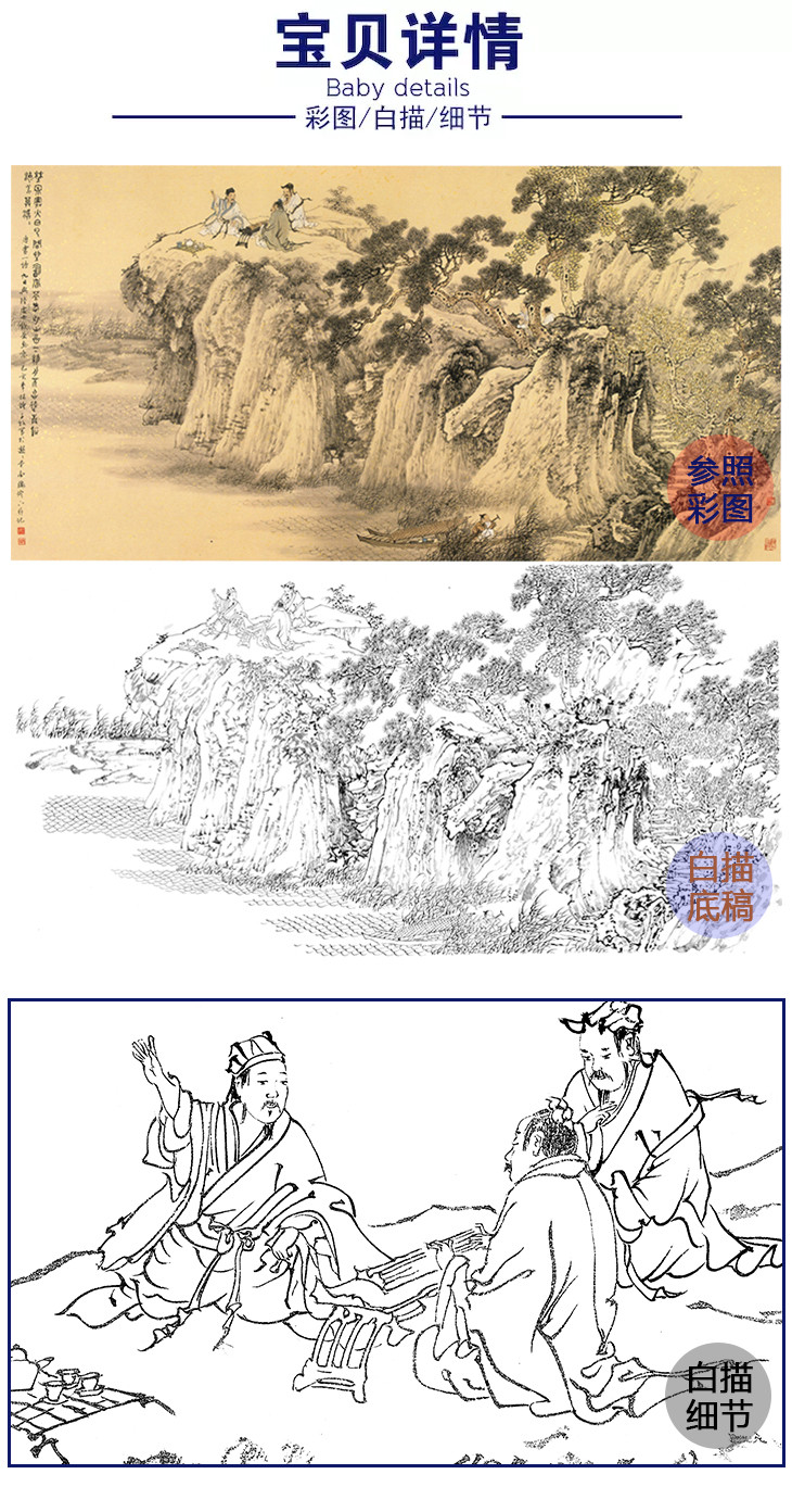 白描底稿-横幅工笔山水人物李子牧-LQ26