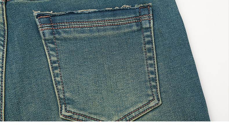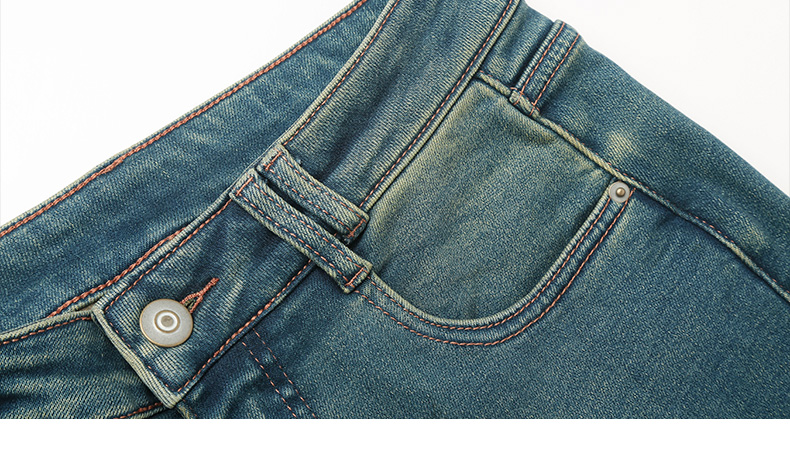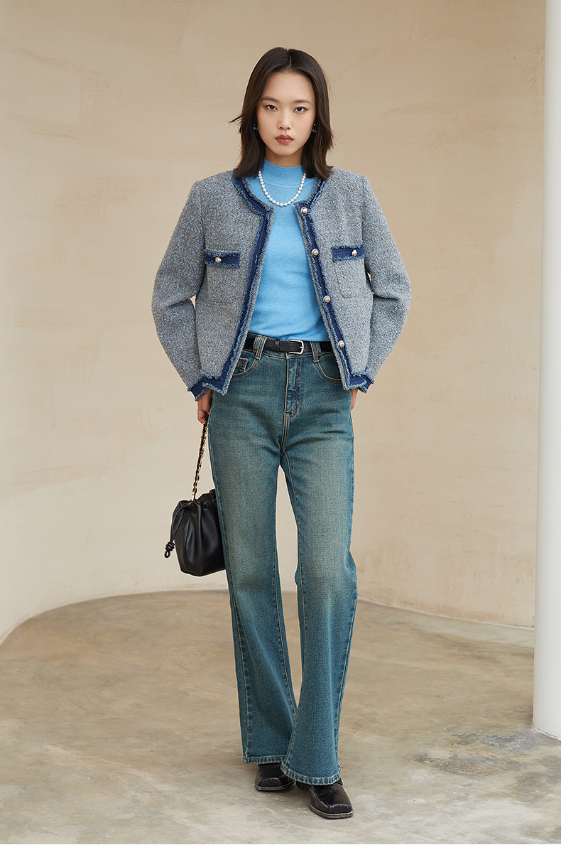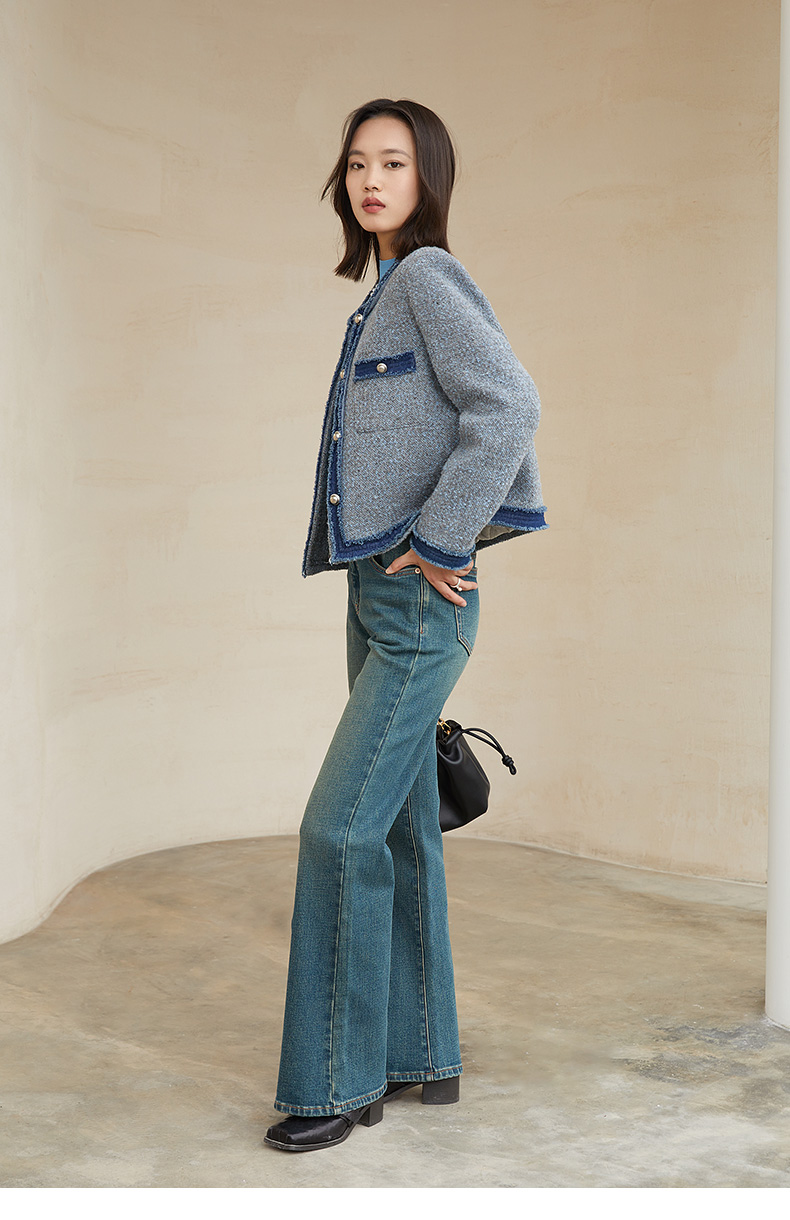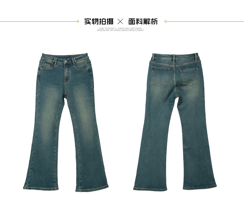 2025 秋冬复古青绿色微喇叭牛仔裤女 高腰显瘦做旧水洗修身显腿长通勤休闲牛仔长裤