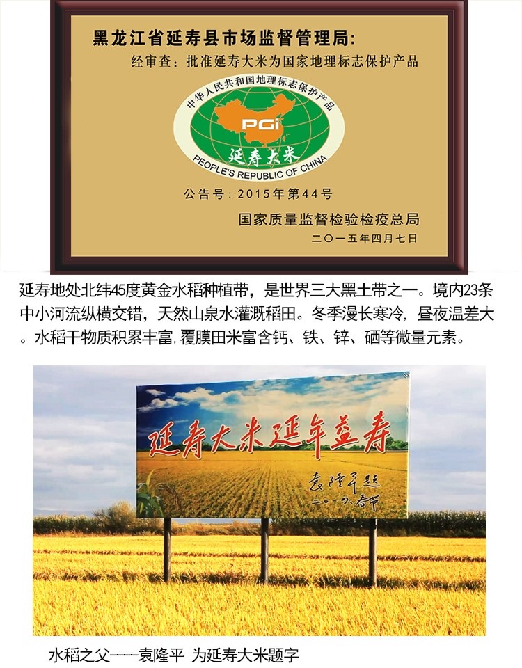 小龙人 黑龙江延寿县稻花香大米 5公斤礼盒装