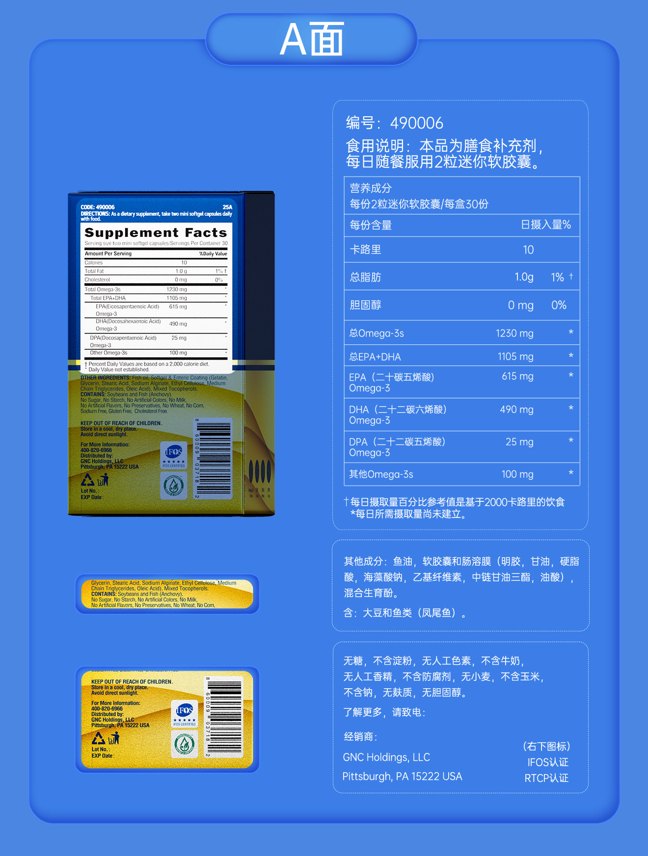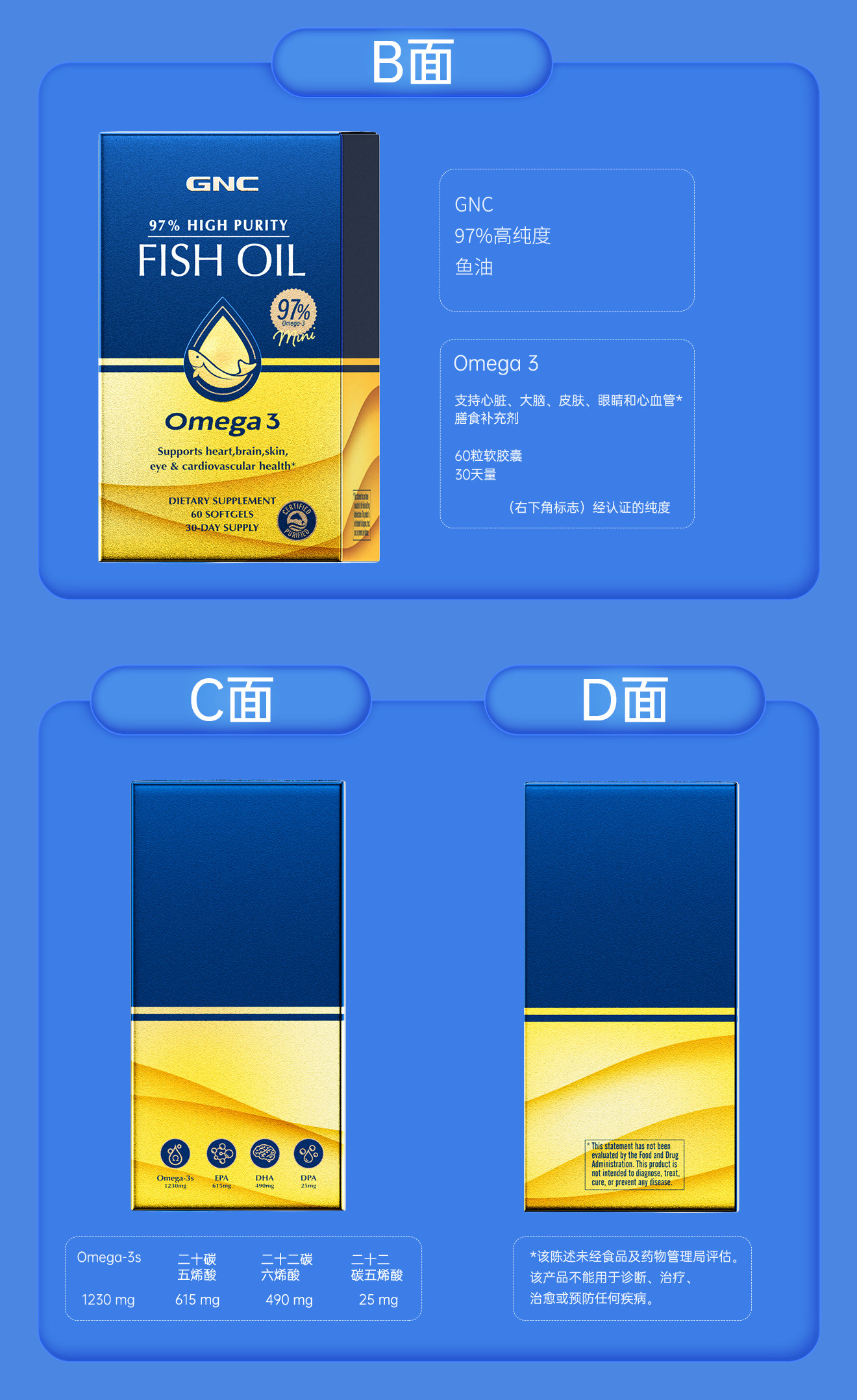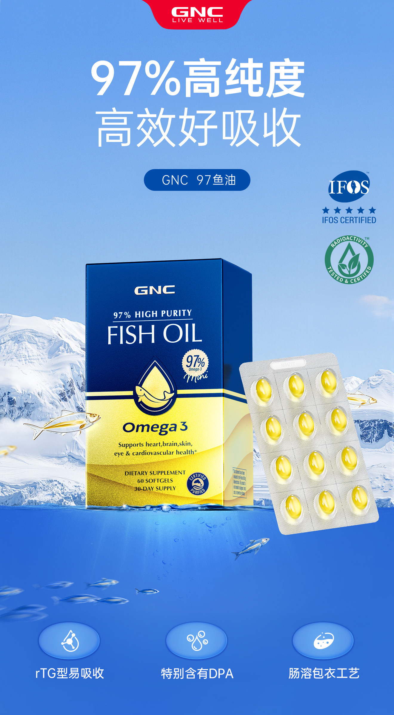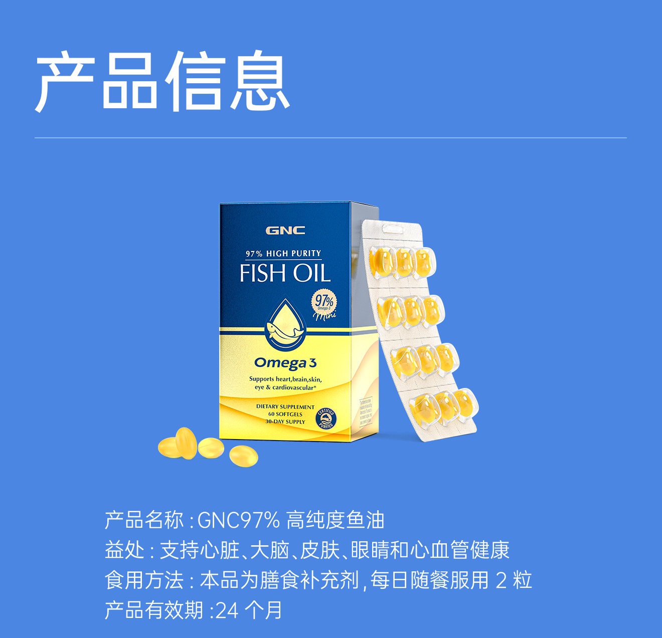 【跨境】GNC/健安喜97%高纯度鱼油软胶囊60粒/盒*2(保健)(独立包装)