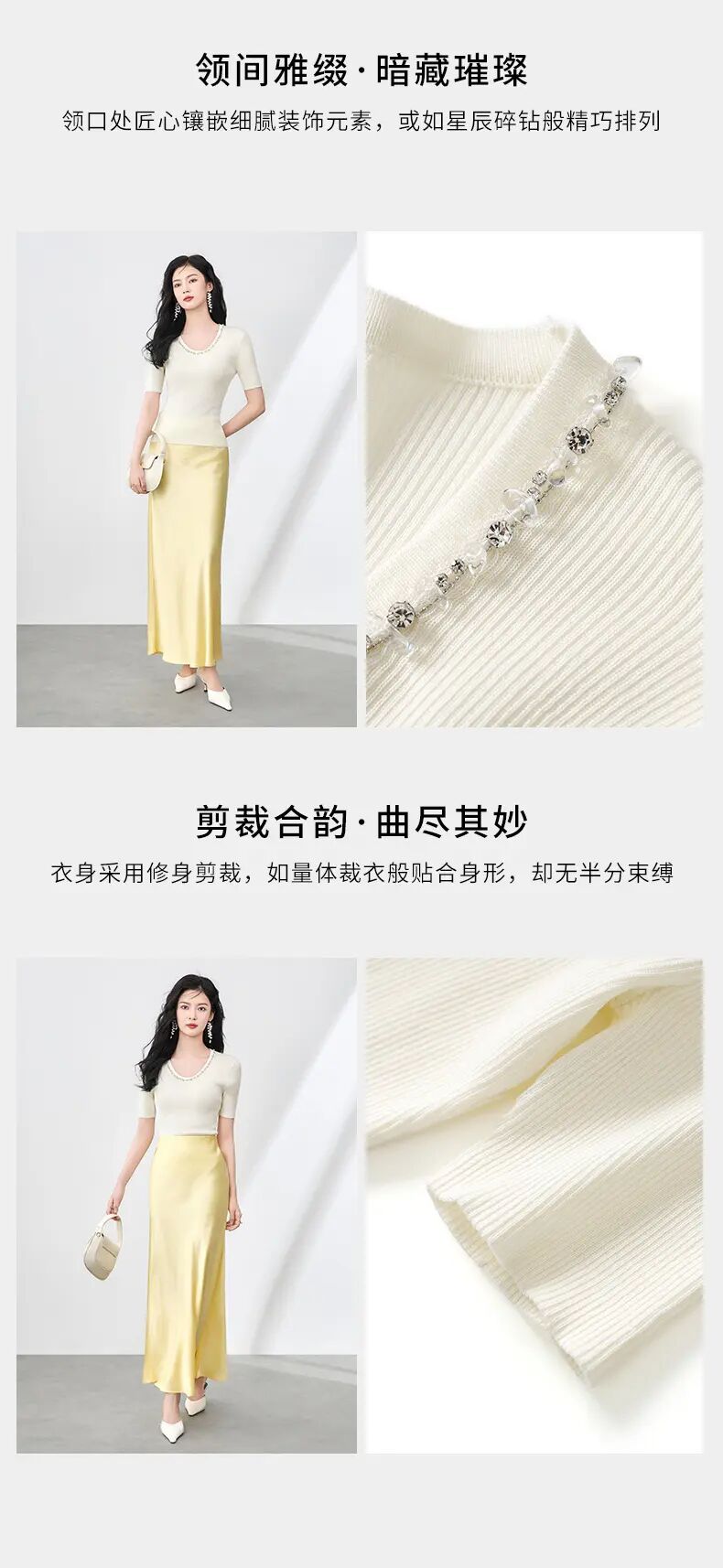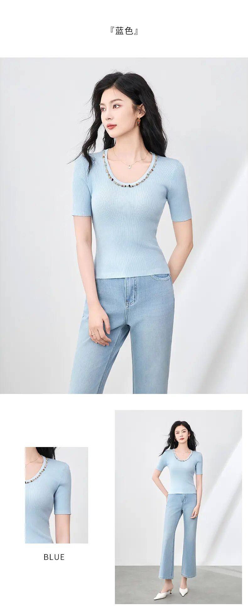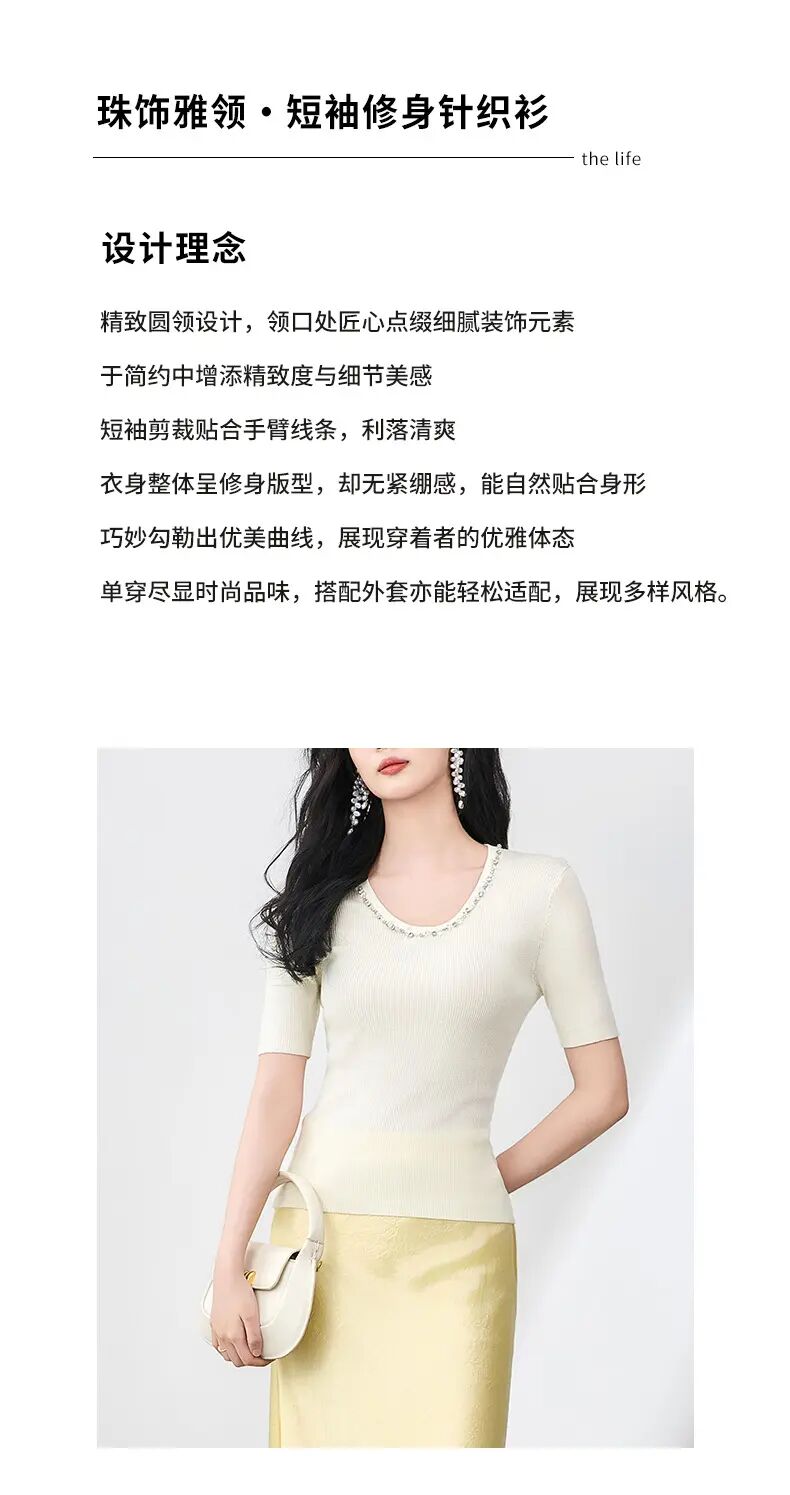 【高货wl】全新升级【铂金会员183/天猫249/差价66】(01751) 洛诗琳设计感重工圆领钉珠天丝钩花针织衫时尚显瘦上衣