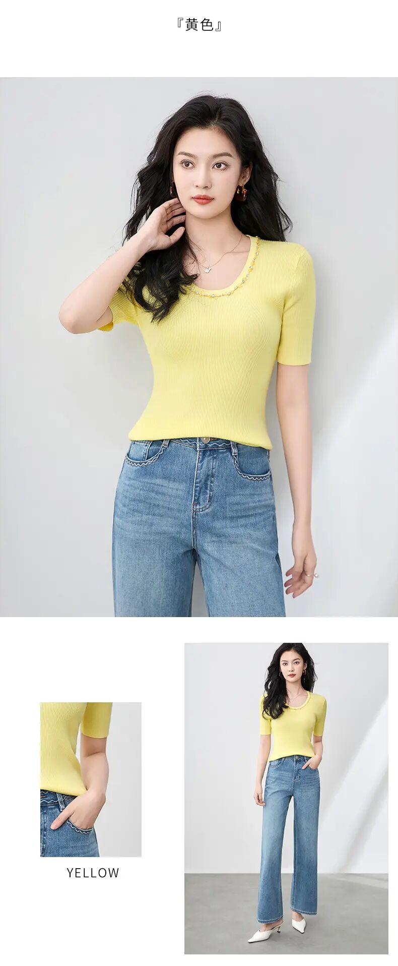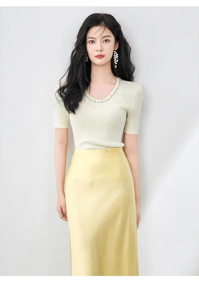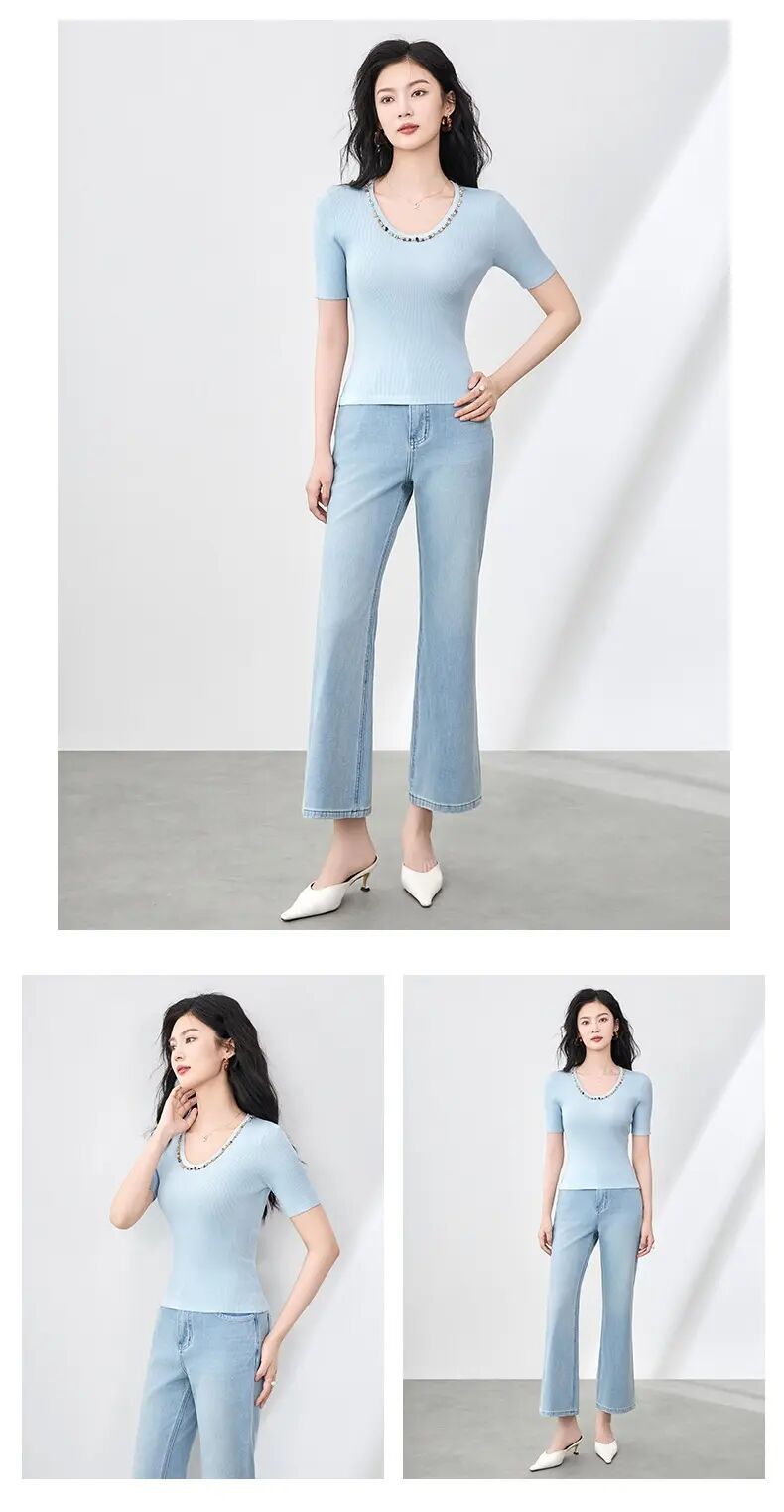 【高货wl】全新升级【铂金会员183/天猫249/差价66】(01751) 洛诗琳设计感重工圆领钉珠天丝钩花针织衫时尚显瘦上衣