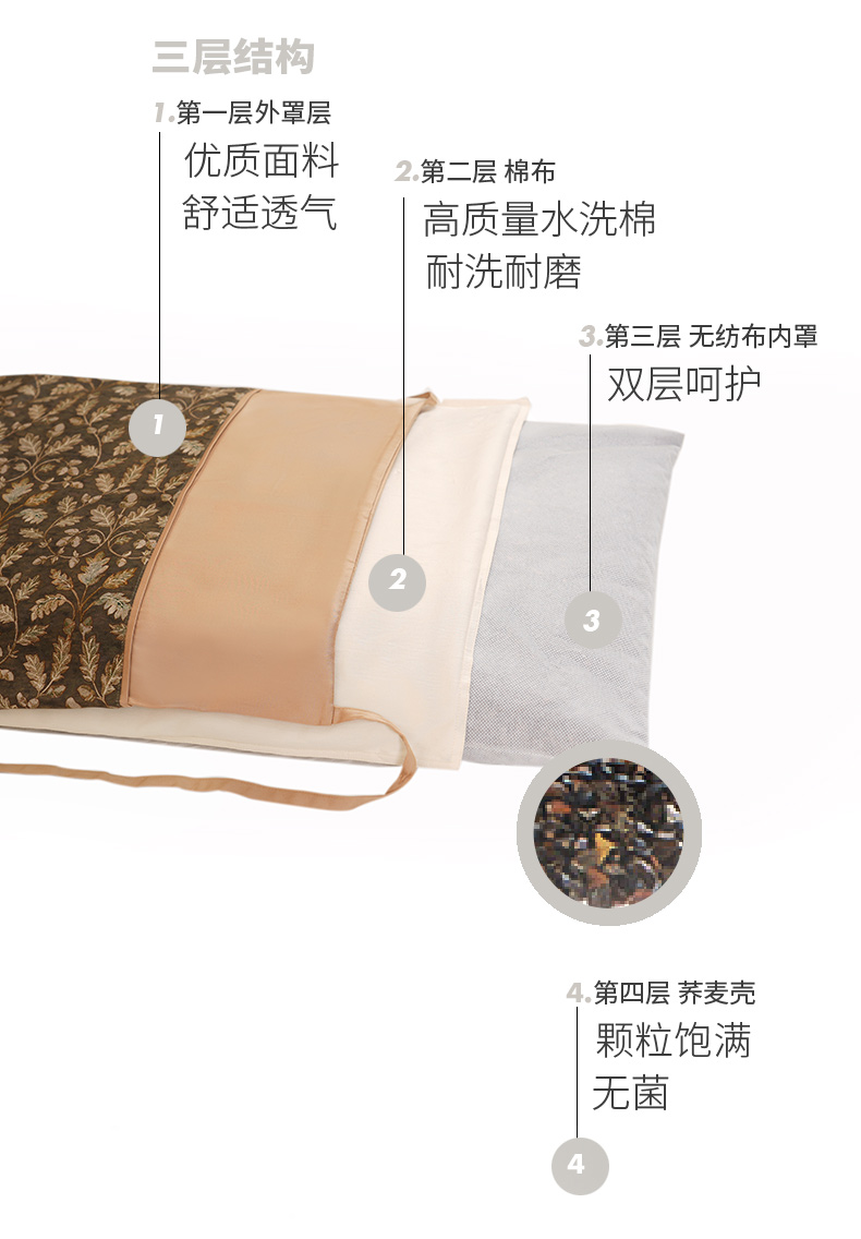 秋韵橡叶系列调节枕荞麦壳枕头护颈椎助睡眠成人不塌陷