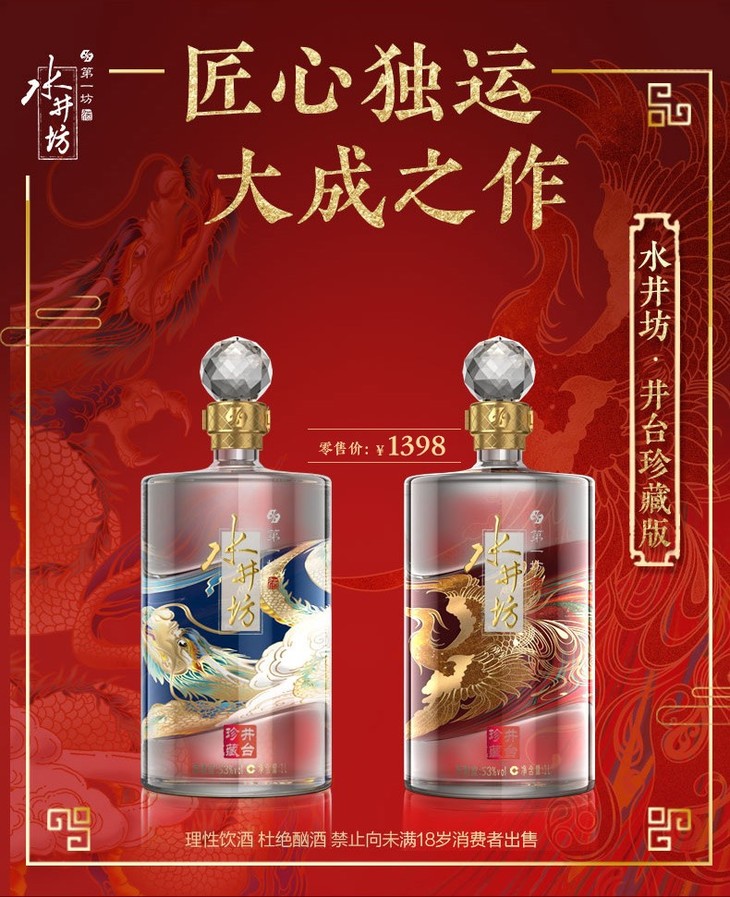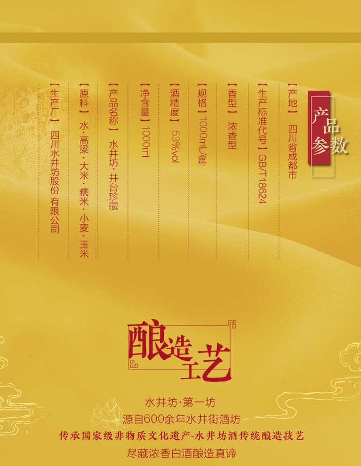 【推荐】水井坊 浓香型 高度 白酒 礼盒 水井坊 井台珍藏版 (凤) 53度 1L
