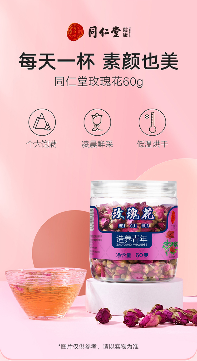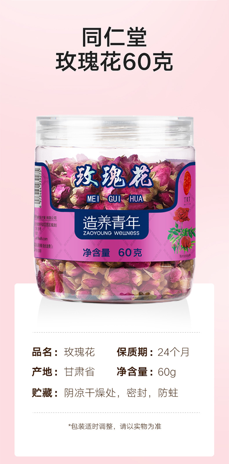 北京同仁堂玫瑰花茶罐装60g玫瑰花干玫瑰茶甘肃玫瑰花 SY