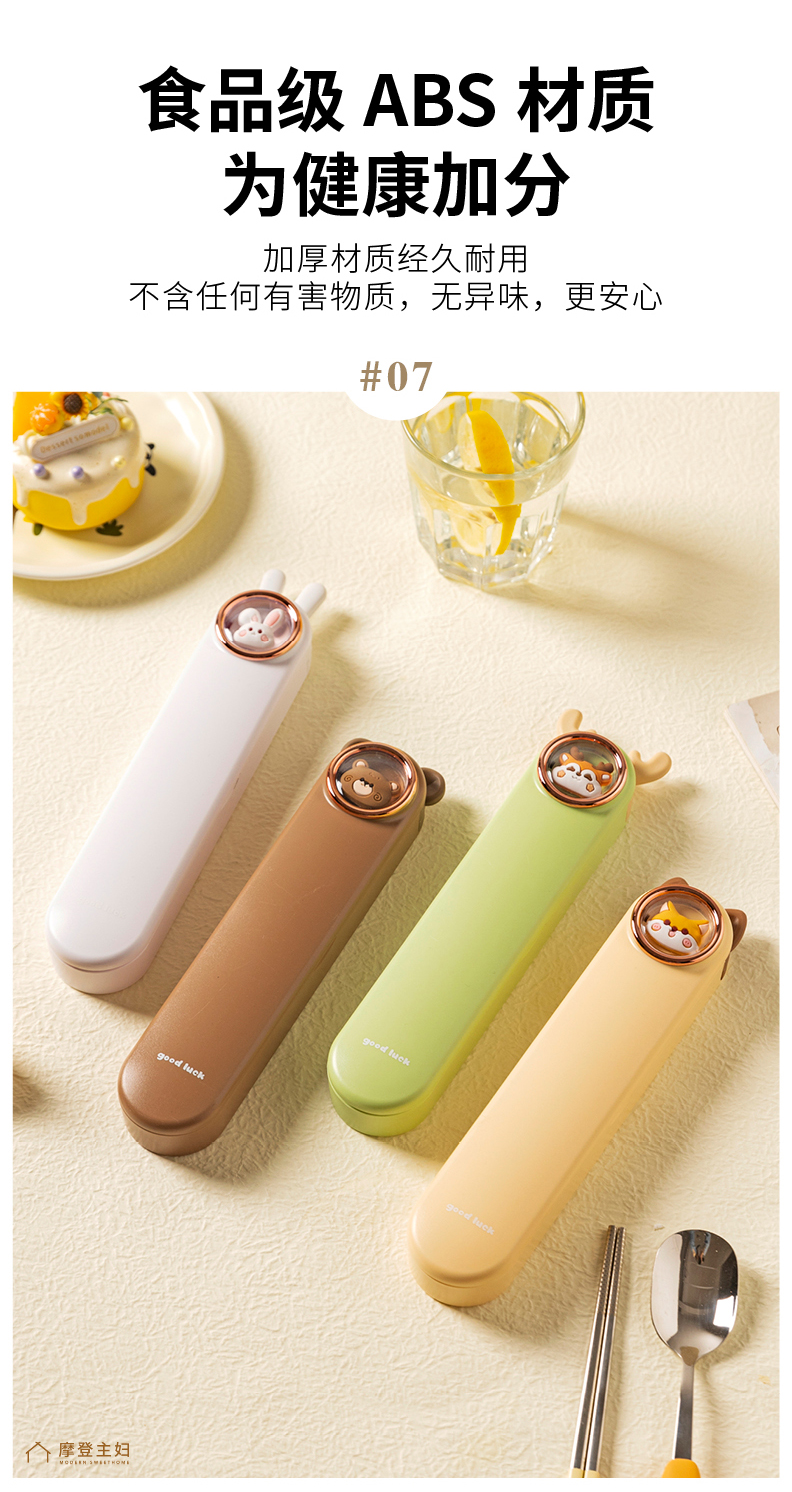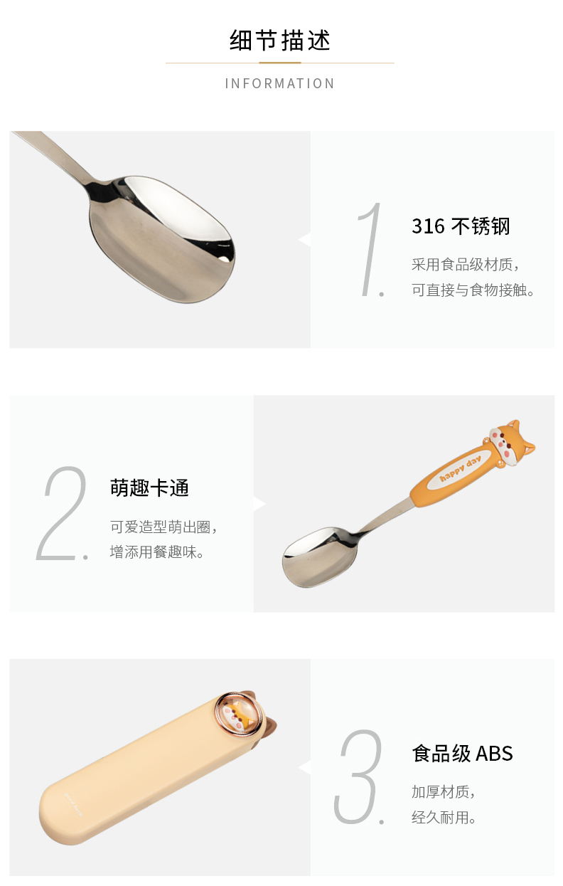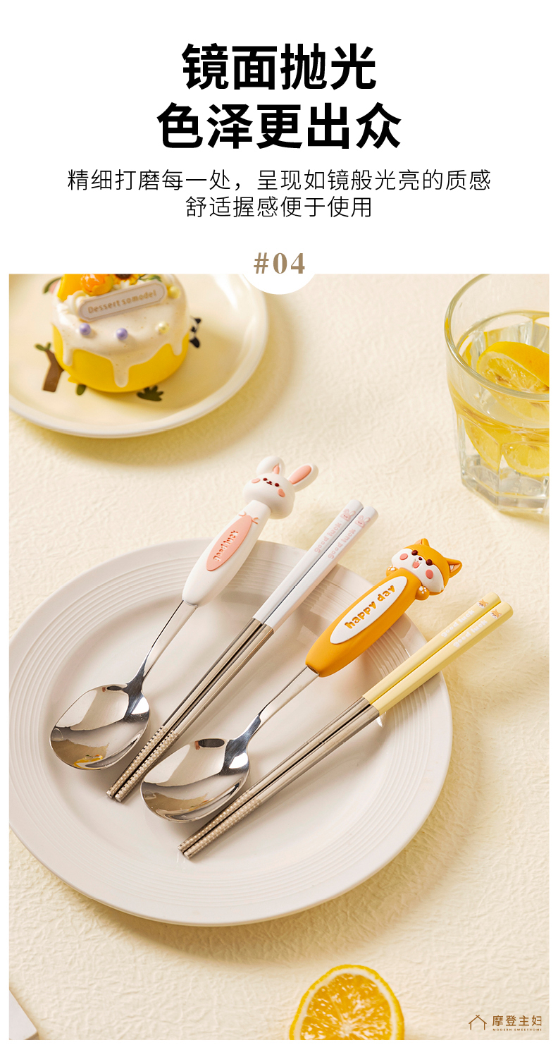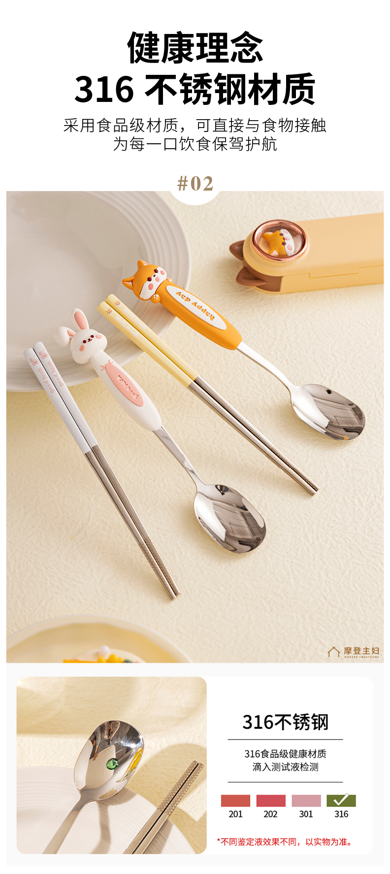 摩登主妇可爱316不锈钢儿童便携餐具小学生专用筷子勺子套装上学
