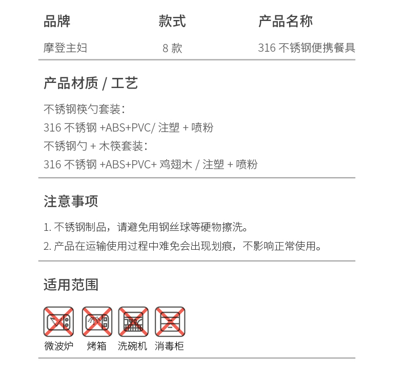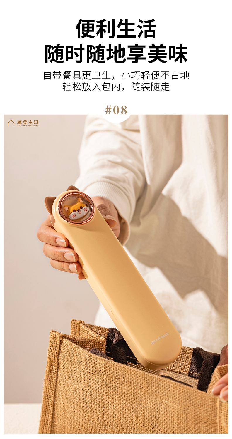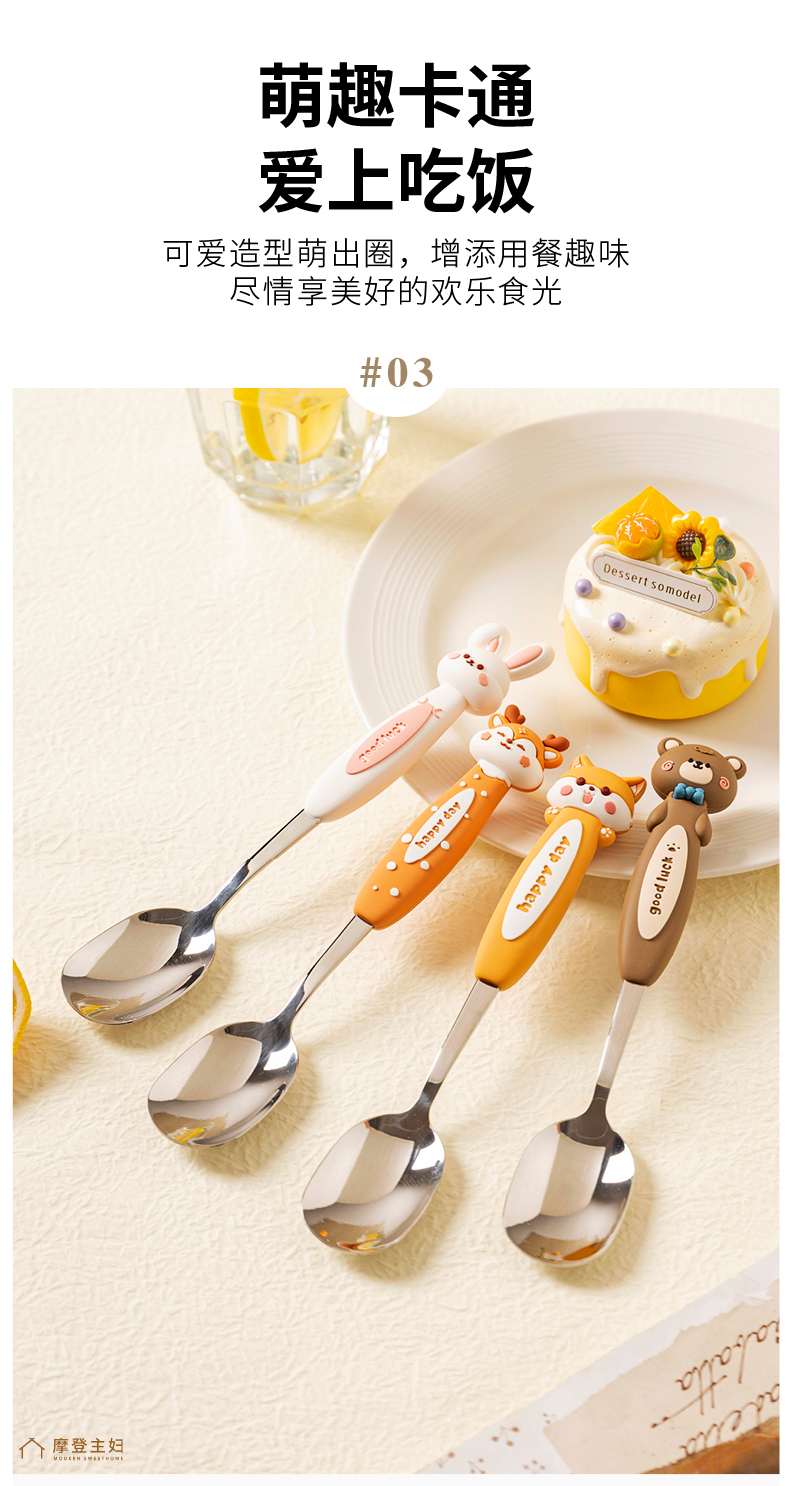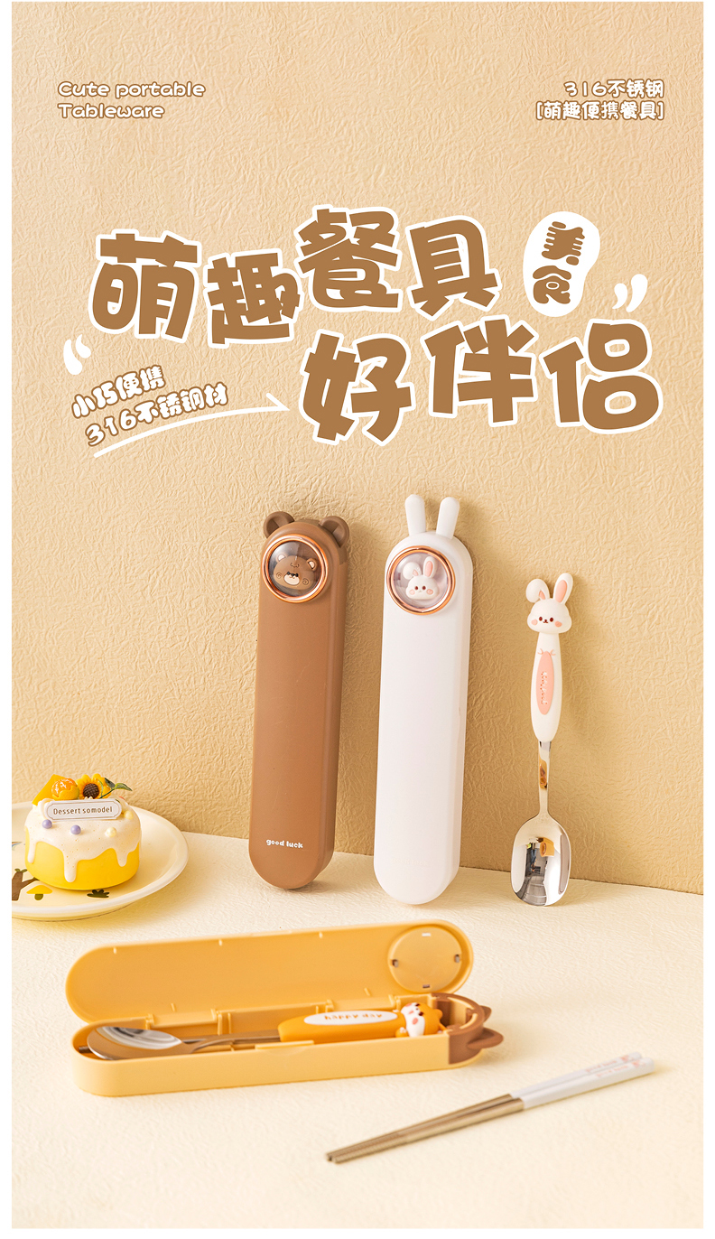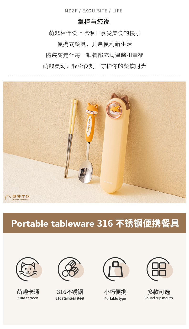 摩登主妇可爱316不锈钢儿童便携餐具小学生专用筷子勺子套装上学