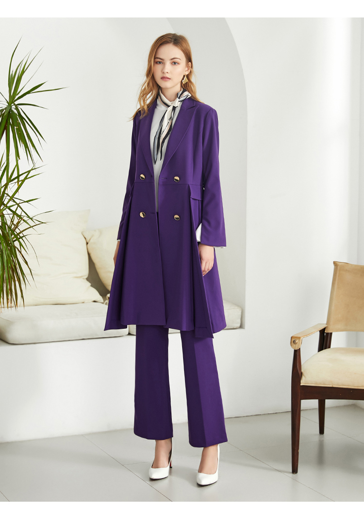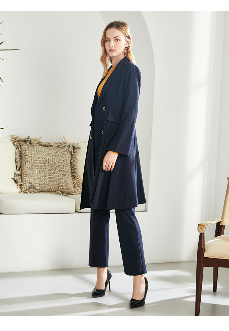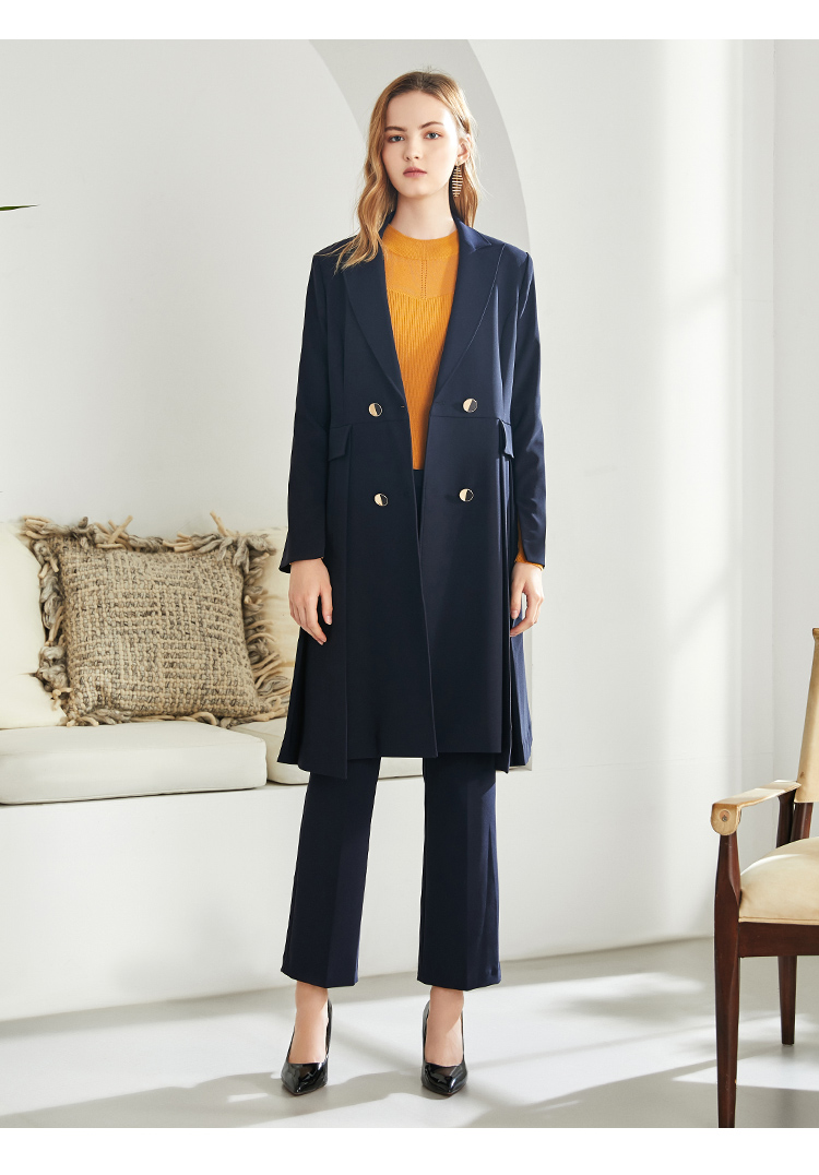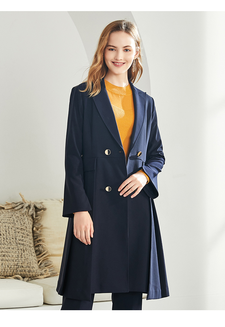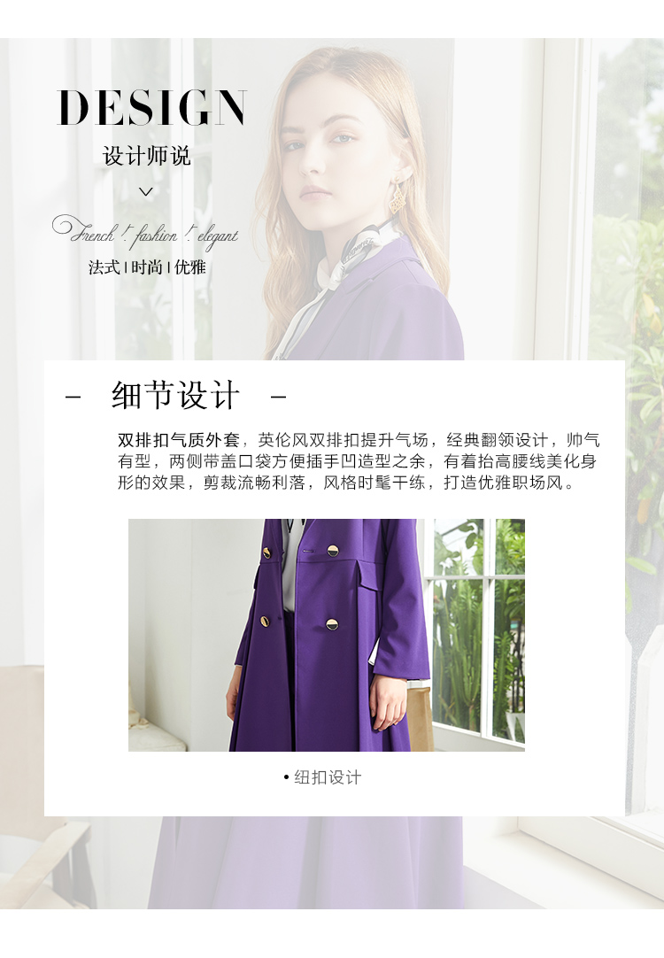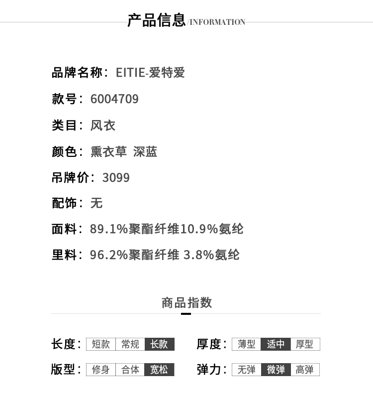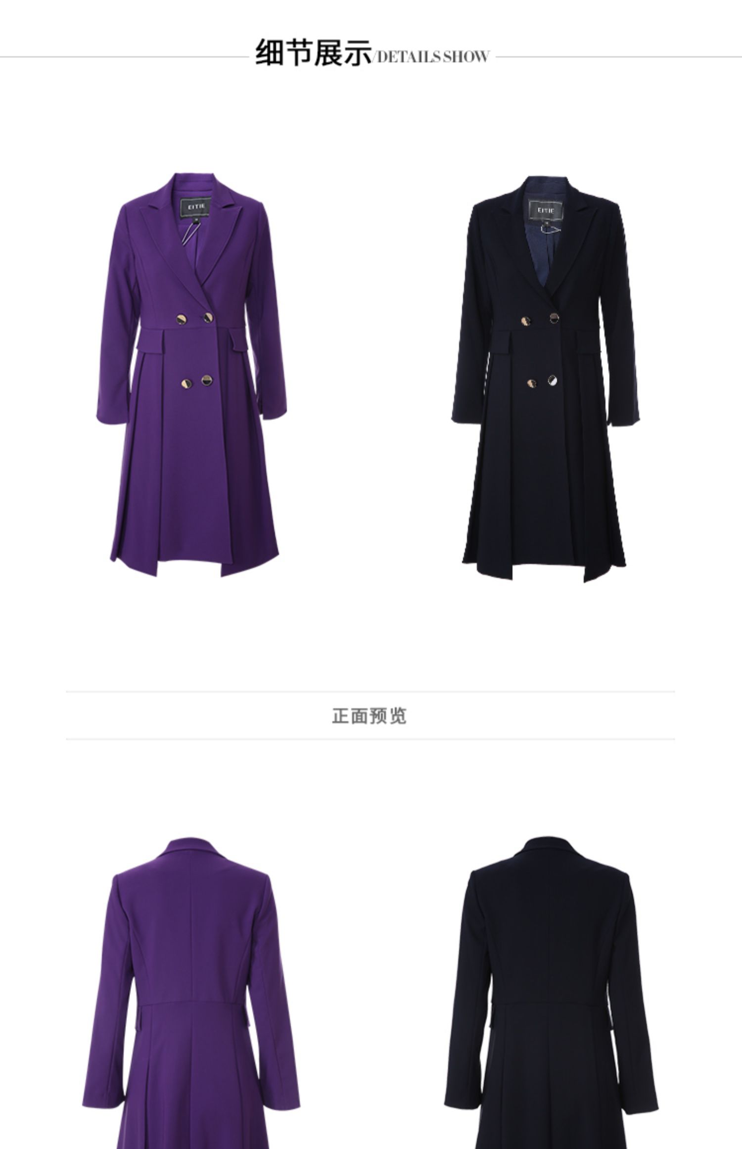 EITIE爱特爱品牌女装秋款时尚通勤职业干练收腰A摆双排扣风衣外套