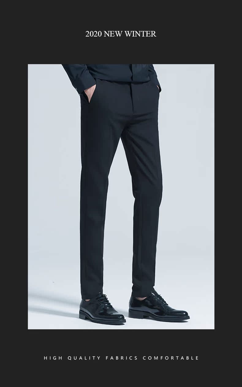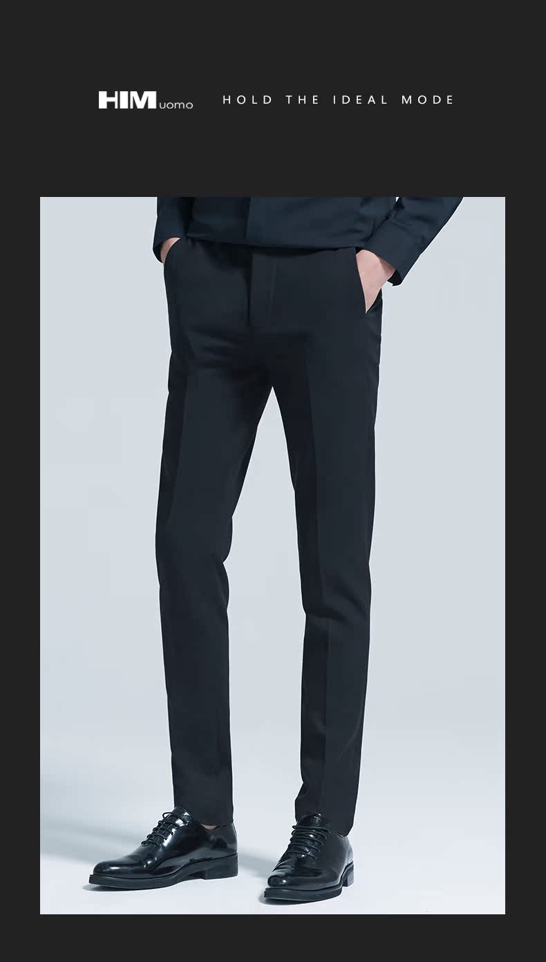 HIM漢崇 商务修身微弹西裤男舒适透气正装通勤纯色长裤 2025秋季