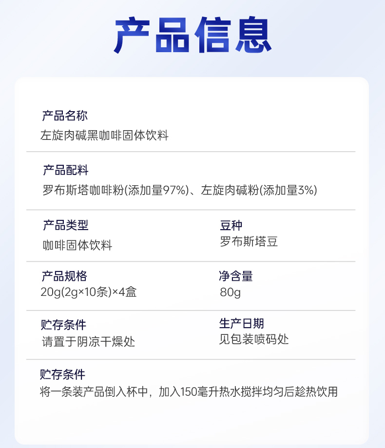 英贝健左旋肉碱黑咖啡2g*10 4盒 8盒