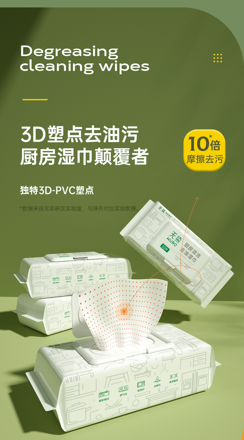 【秒杀专享】无染去油去污家用厨房湿巾3包/6包