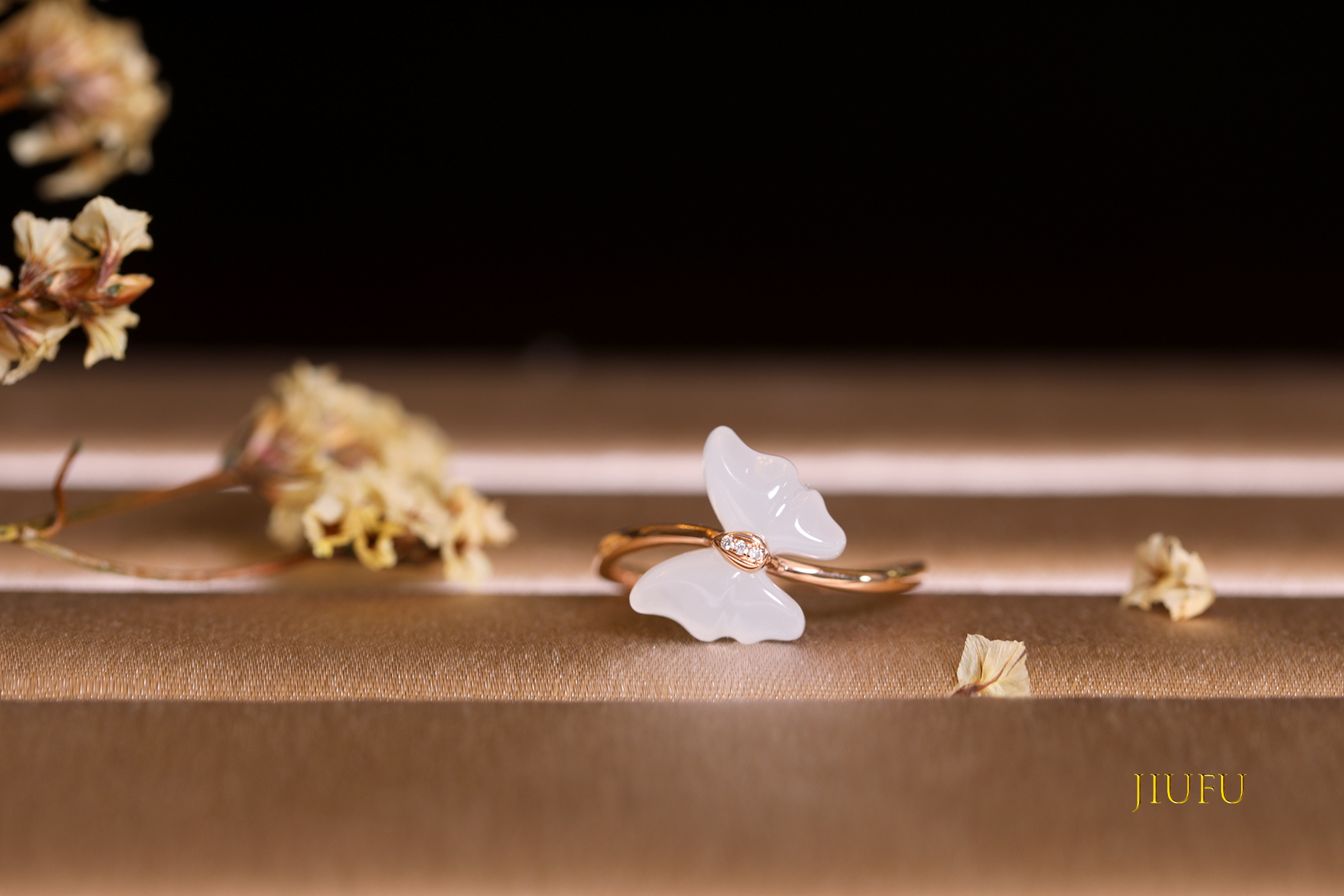 18K玫瑰金和田玉(白玉) 戒指
