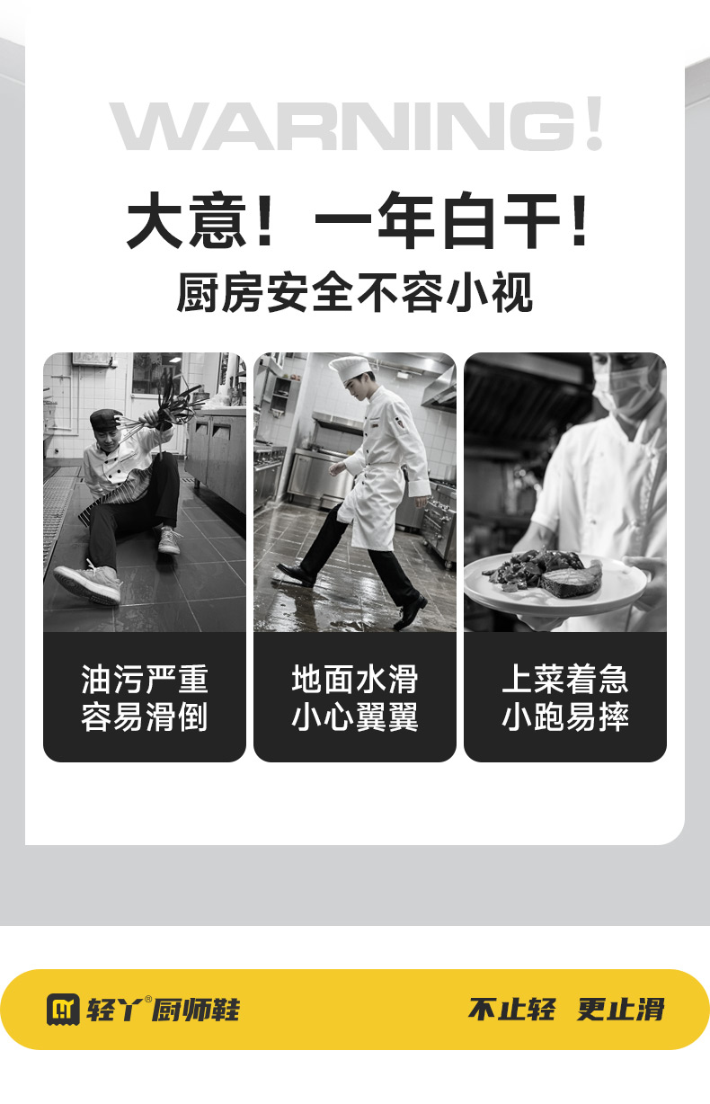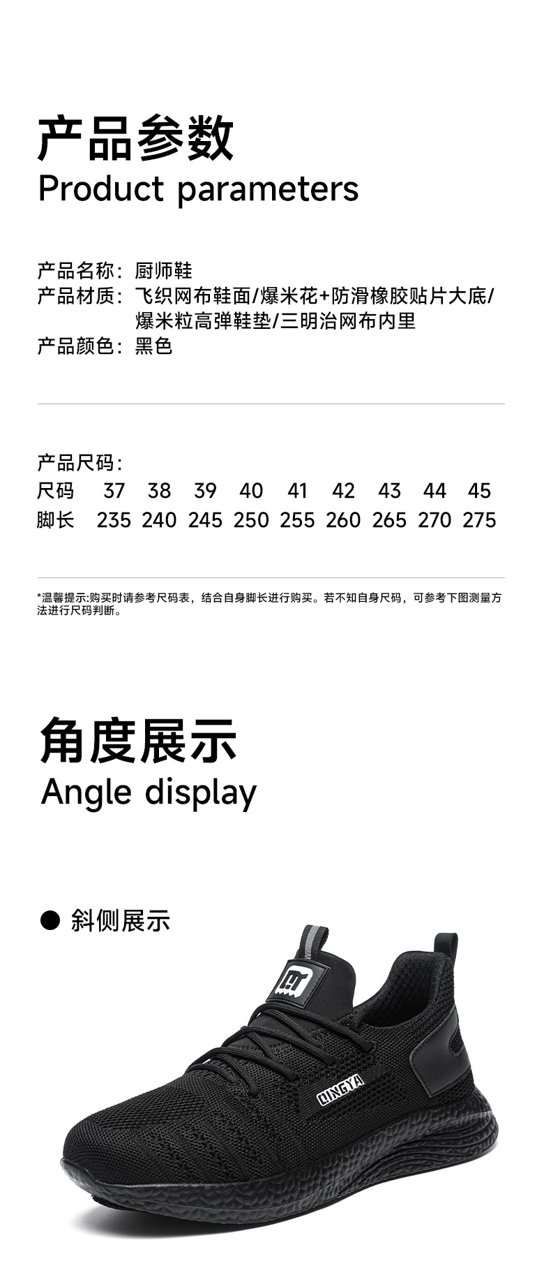 厨师鞋专业防滑款 无钢头无中底不防砸不防刺防滑SRC鞋底爆米花+橡胶贴片