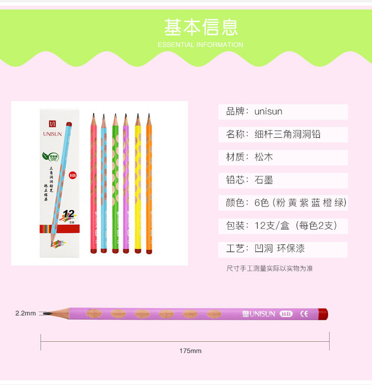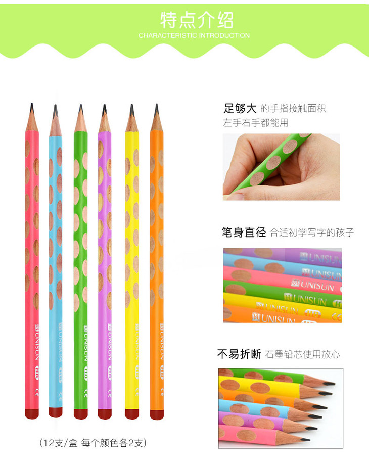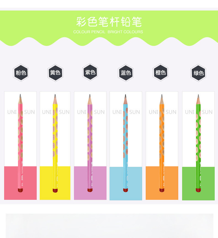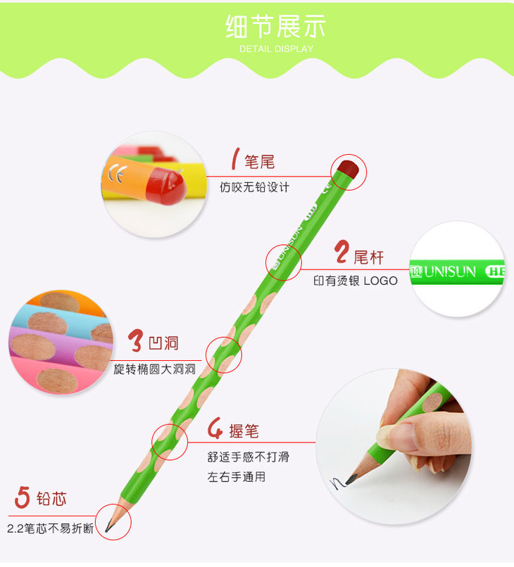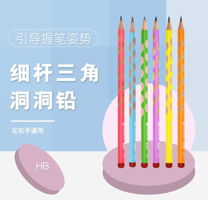 矫正握姿洞洞铅笔 | 优尼森 学生练字考试书写HB铅笔5盒装(赠橡皮/转笔刀)