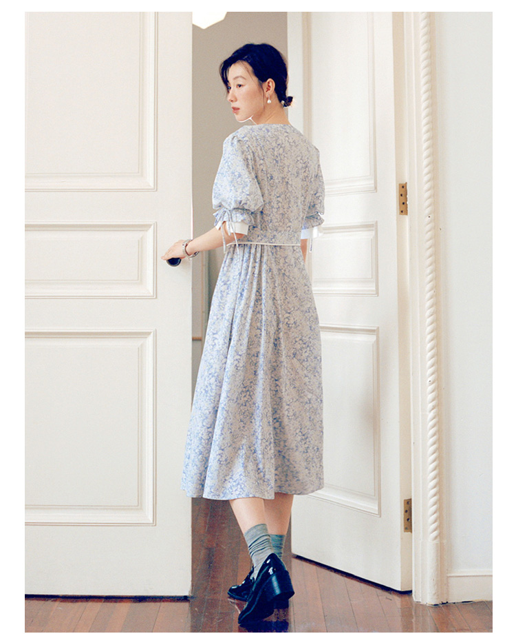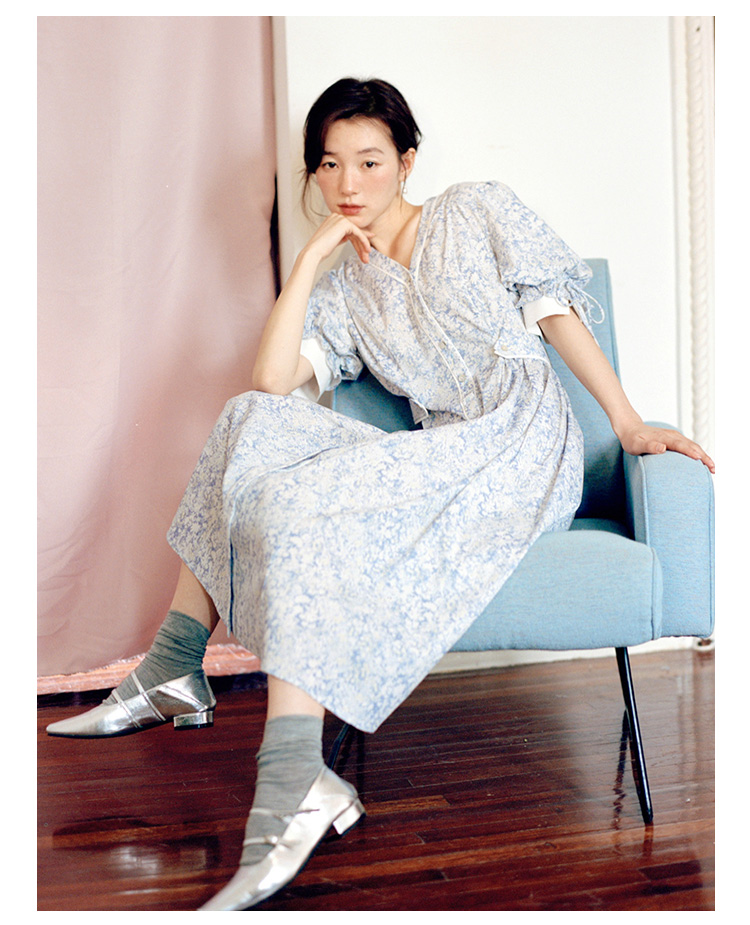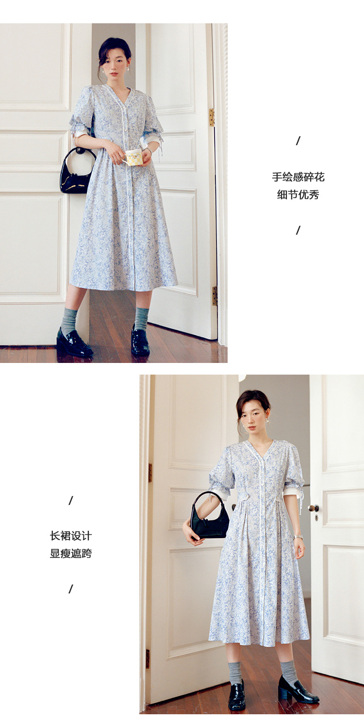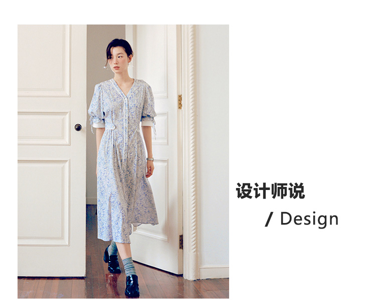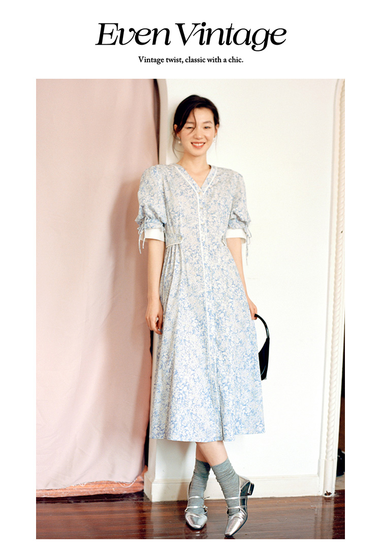 Even Vintage | 飘逸灵动 原创设计文艺复古小碎花V领长款连衣裙