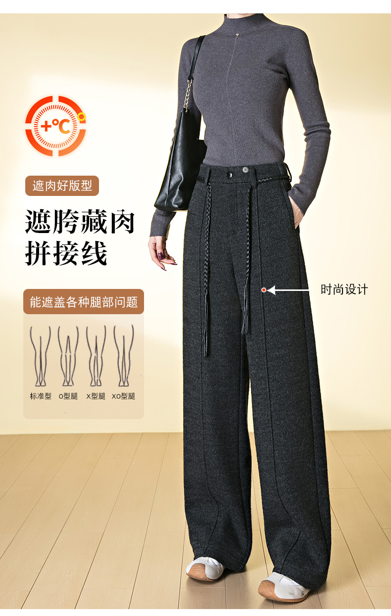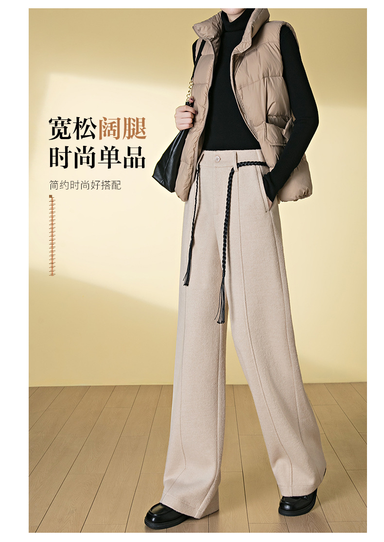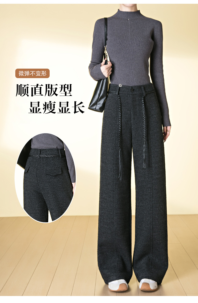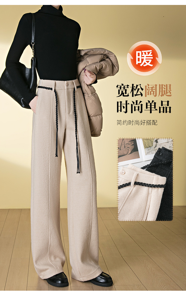 HSS 3087高阶羊毛阔腿裤加厚垂感软糯慵懒直筒羊毛呢糯米裤 商品图4
