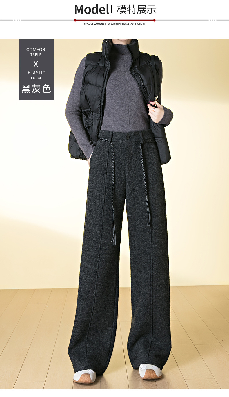 HSS 3087高阶羊毛阔腿裤加厚垂感软糯慵懒直筒羊毛呢糯米裤 商品图2