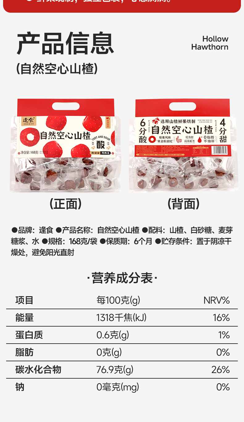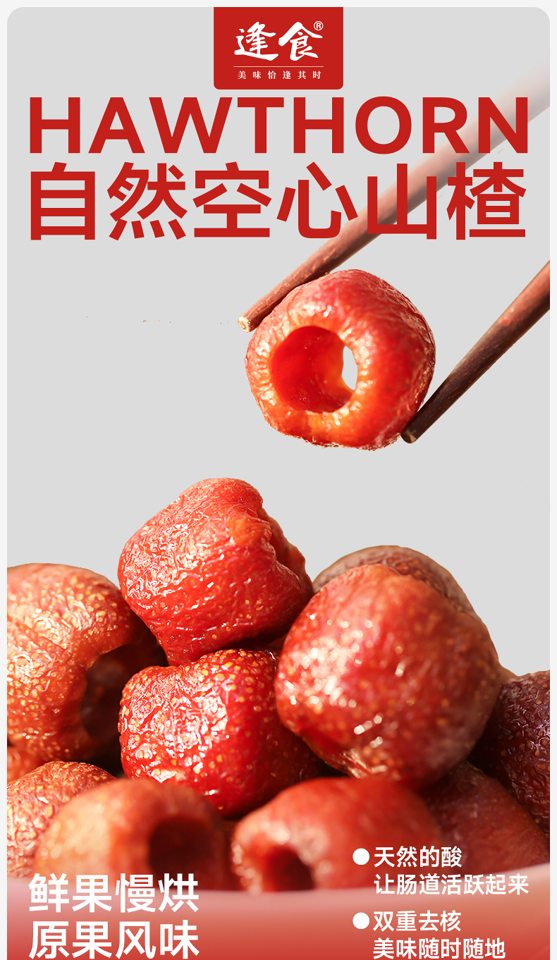 逢食 自然空心山楂168g/袋,果大肉厚,软糯嚼劲