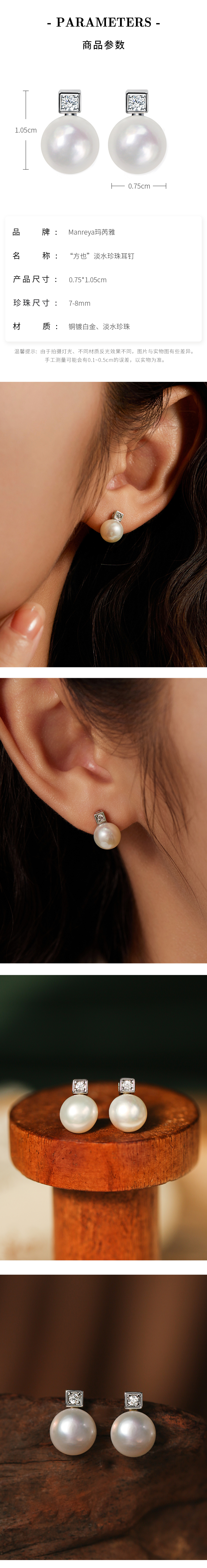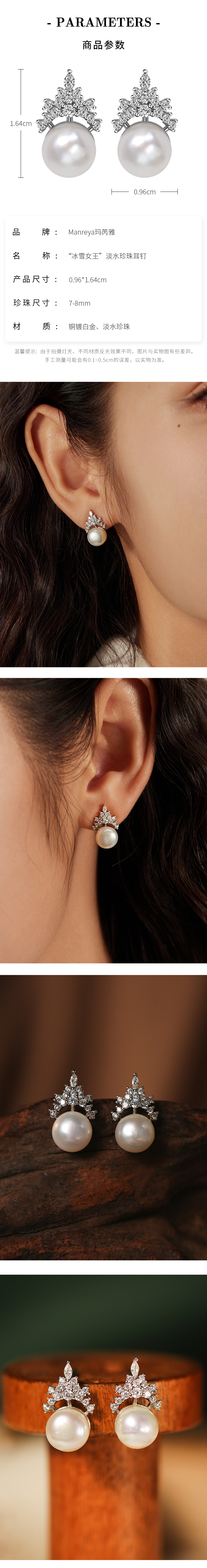 ②淡水珍珠,由于天然生物的过程,会存在形状不规则、珍珠坑,生长斑等情况,不属于质量售后范围。