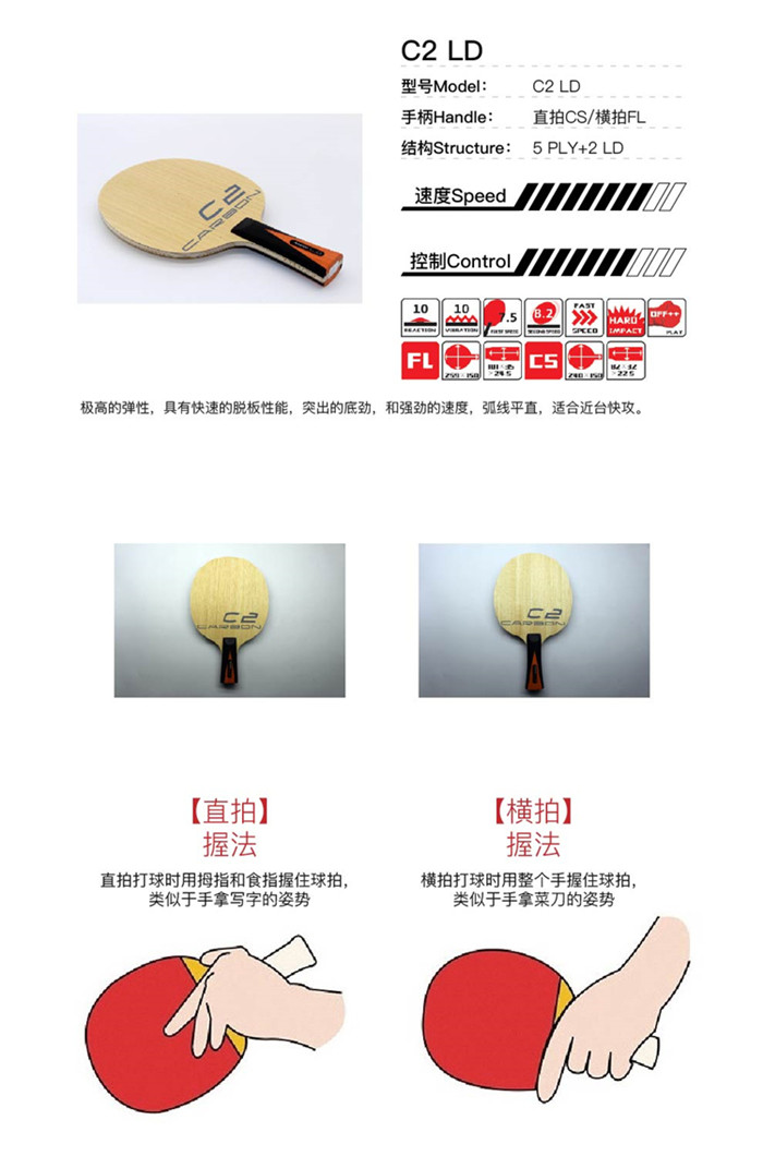 三维Sanwei C2LD 专业乒乓球底板 五木二碳LD快攻弧圈型底板