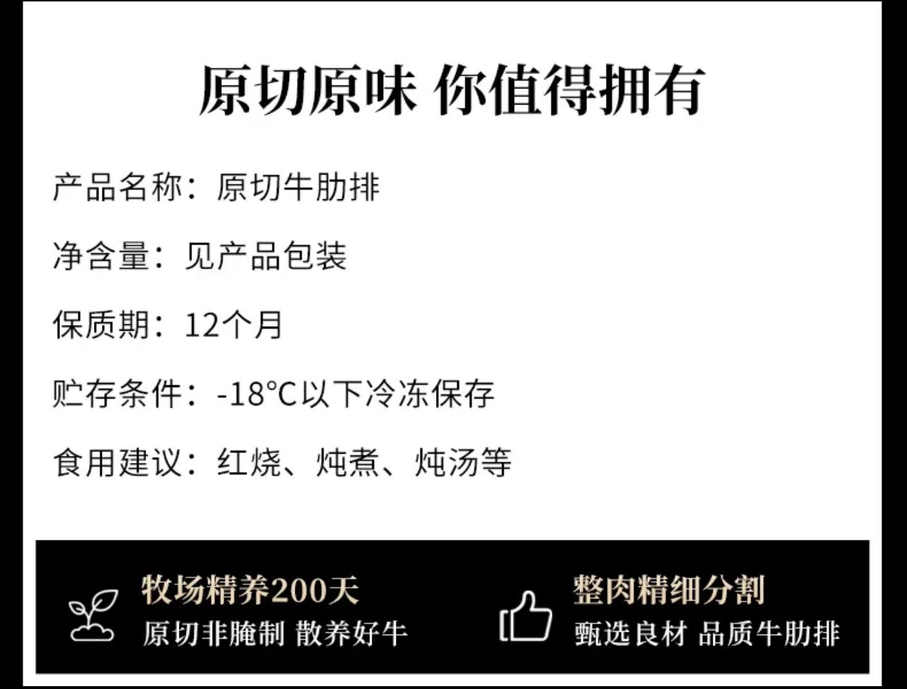 规格:原切牛寸排2000g*1袋、原切牛肋排1250g*2袋