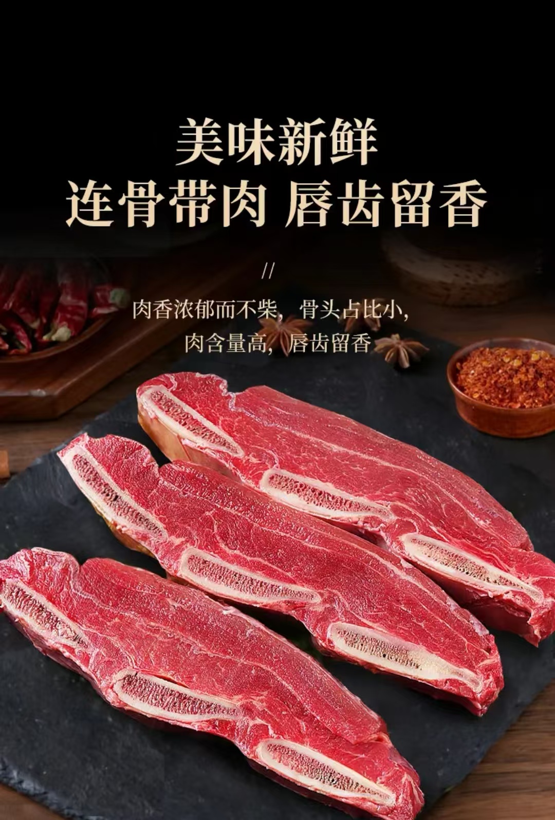 【草原散养 原肉整切 清真品质】东上御品 原切牛寸排2000g*1袋/牛肋排1250g*2袋