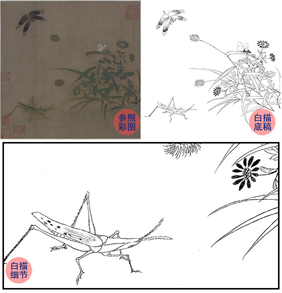 宋画草虫小品白描底稿-佚名-《写生草虫图》-斗方小品册页-多种白描尺寸可选-GR17