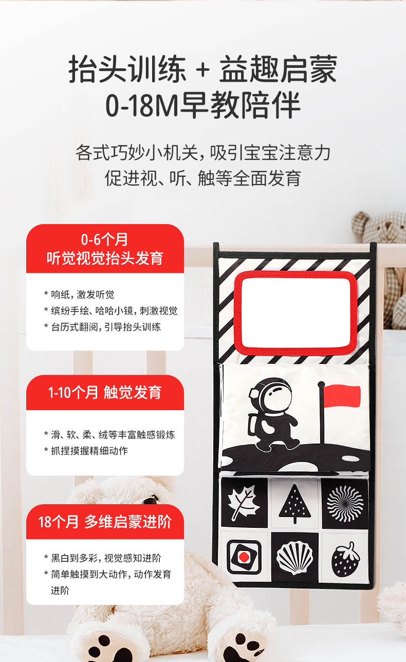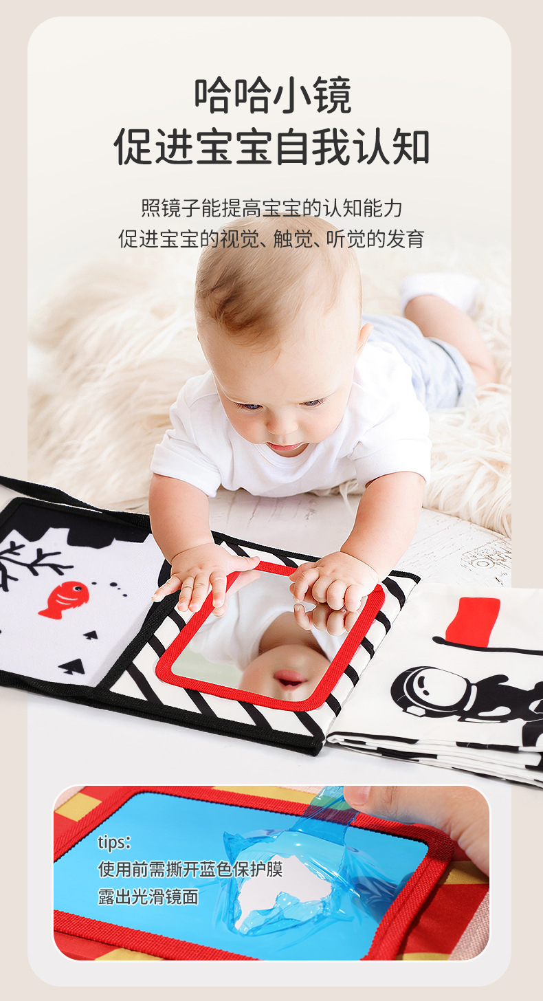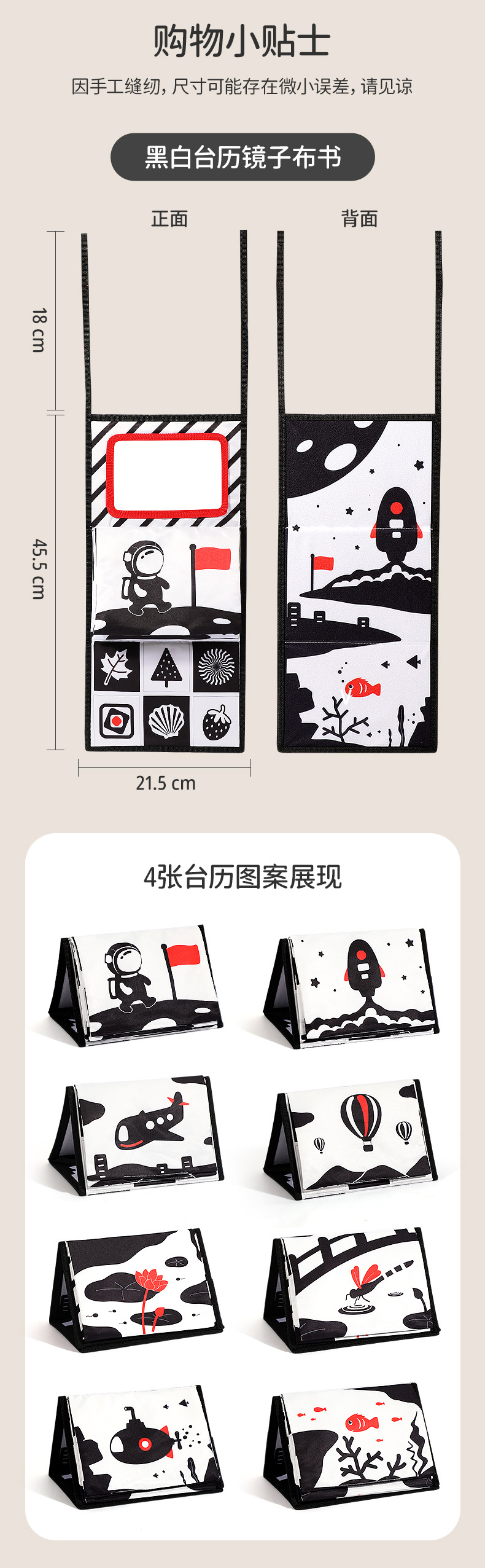 【多维启蒙!镜子台历布书】婴儿早教启蒙台历布书,宝宝抬头训练,可挂式撕不烂带响纸哈哈镜li