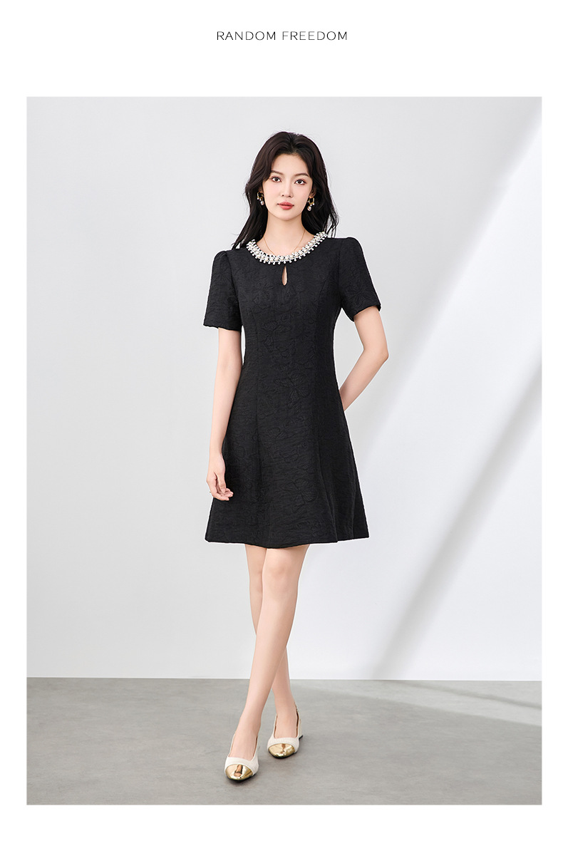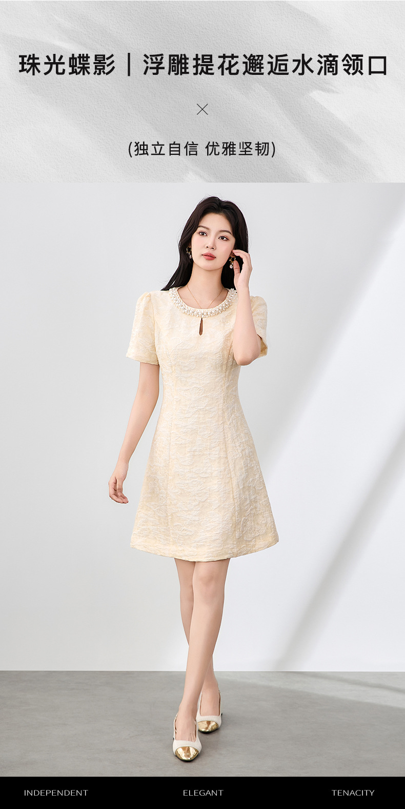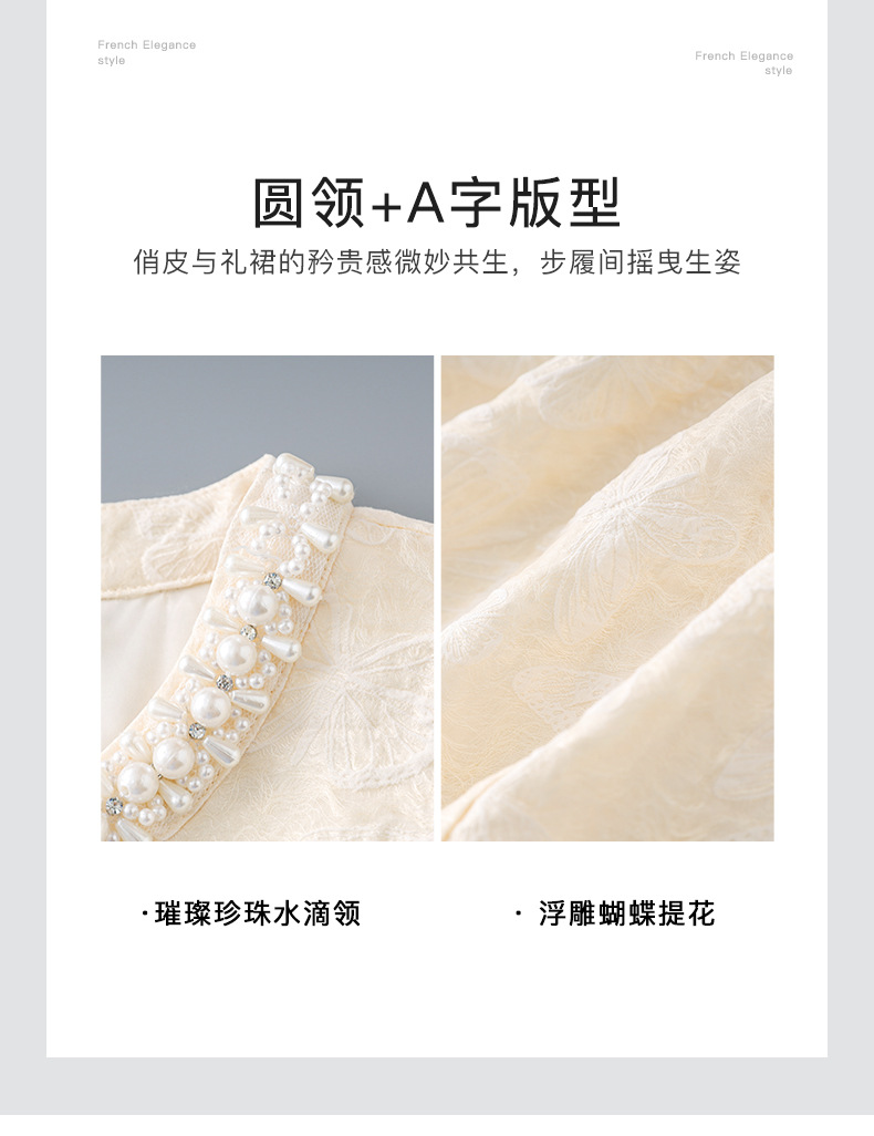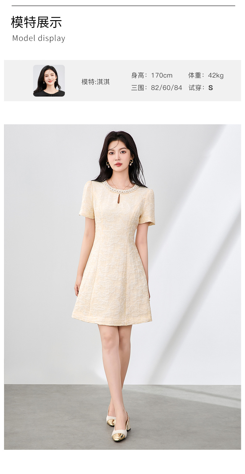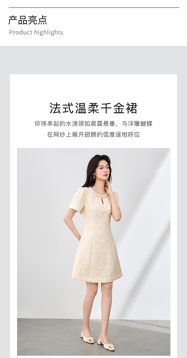 「高货wl」全新升级【铂金会员395/天猫529/差价134】(10517)洛诗琳重工浮雕提花连衣裙2025夏季法式钉钻气质收腰裙