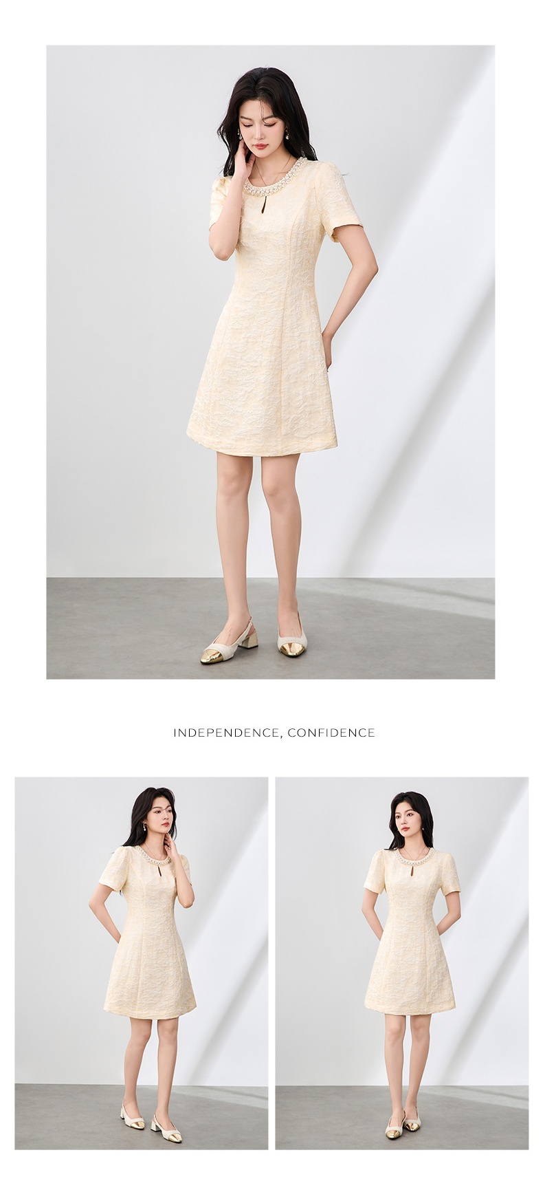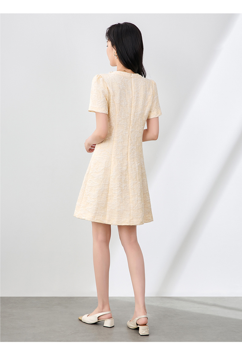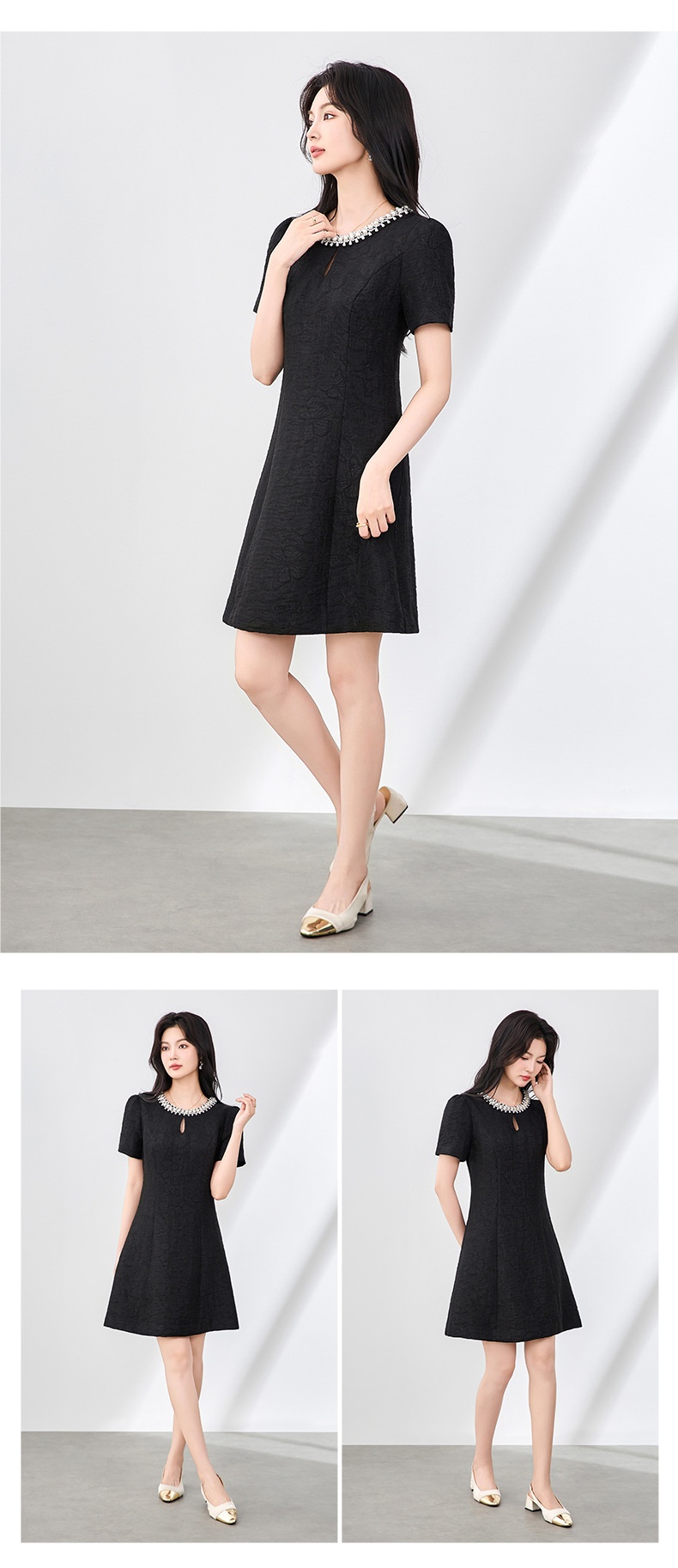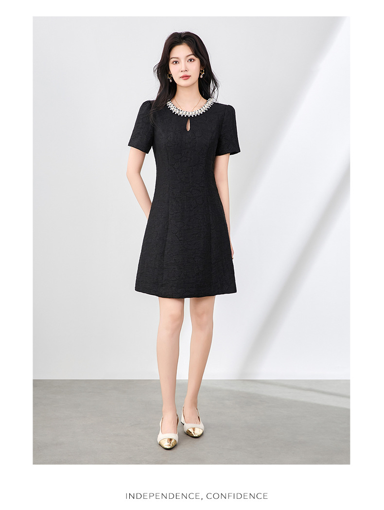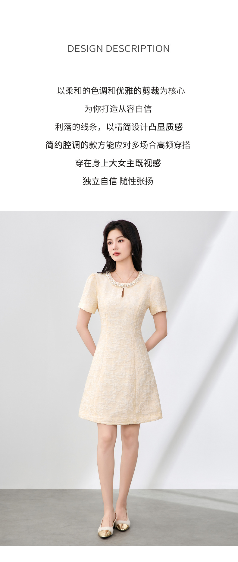 「高货wl」全新升级【铂金会员395/天猫529/差价134】(10517)洛诗琳重工浮雕提花连衣裙2025夏季法式钉钻气质收腰裙